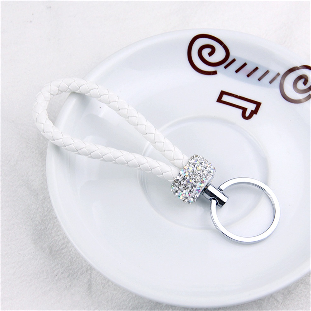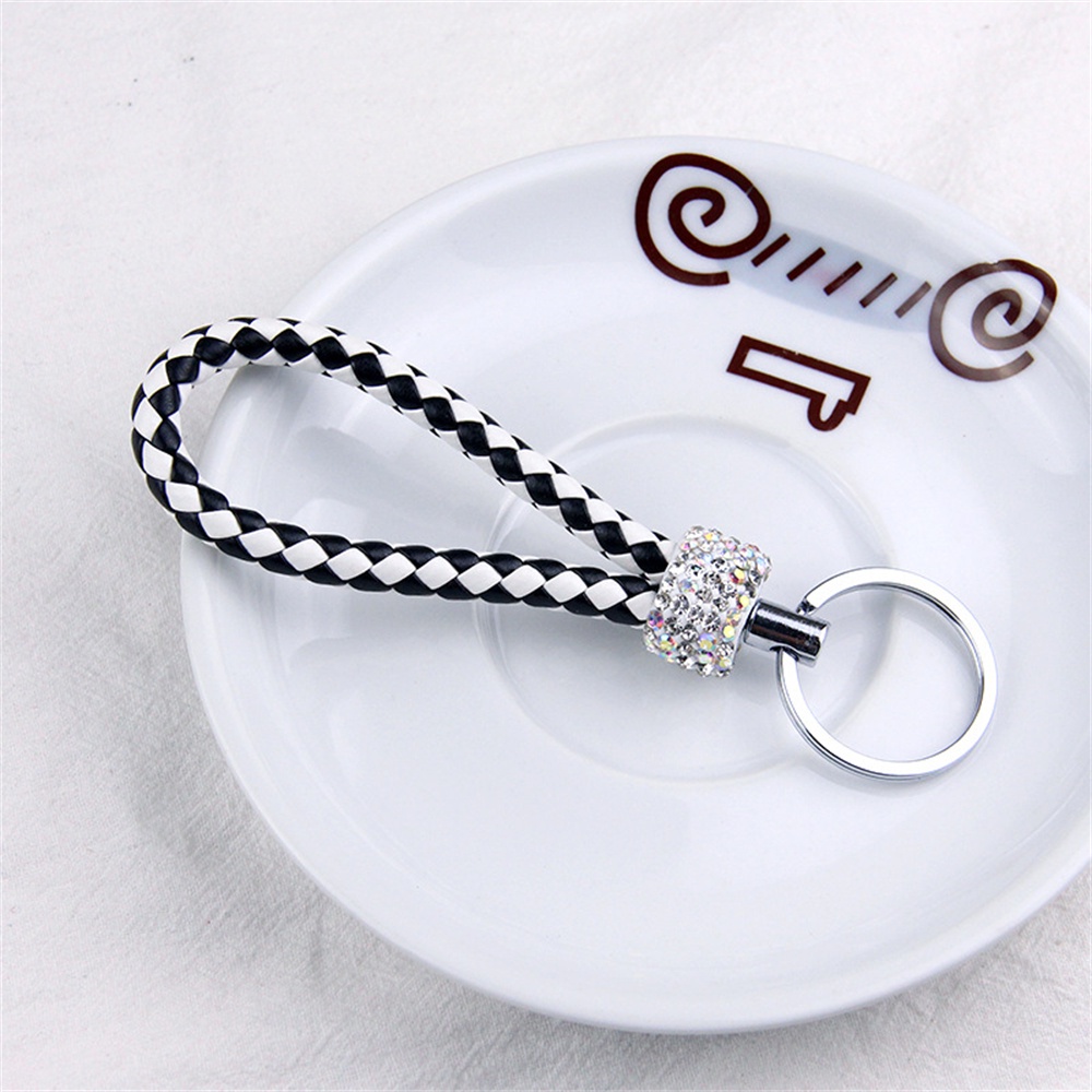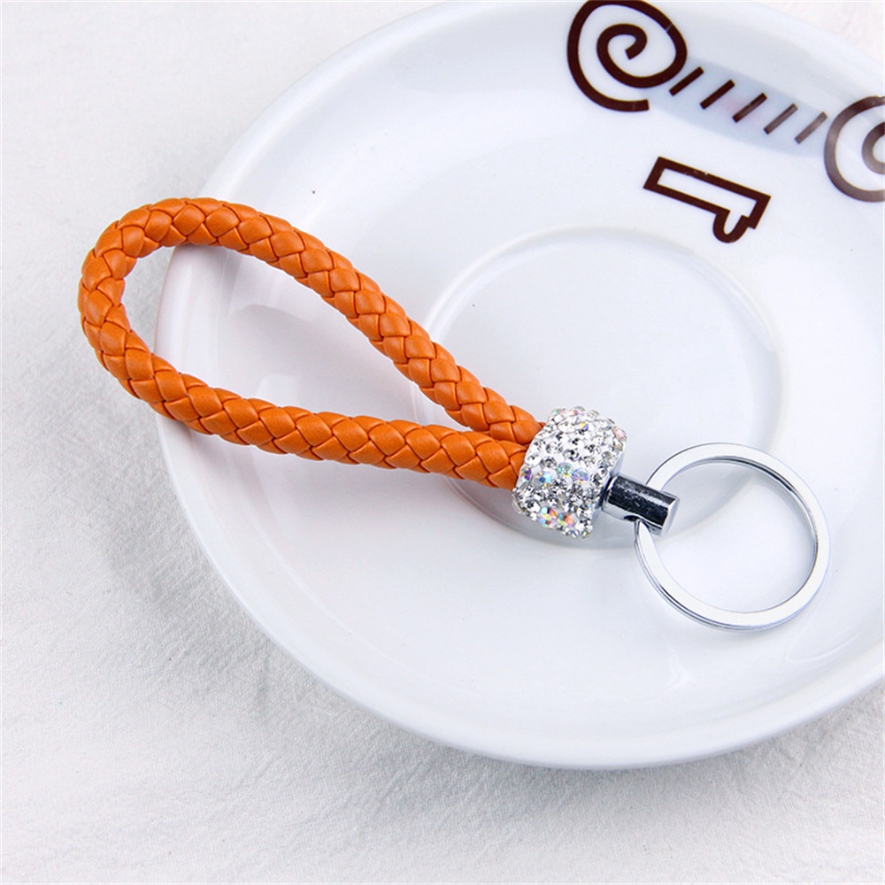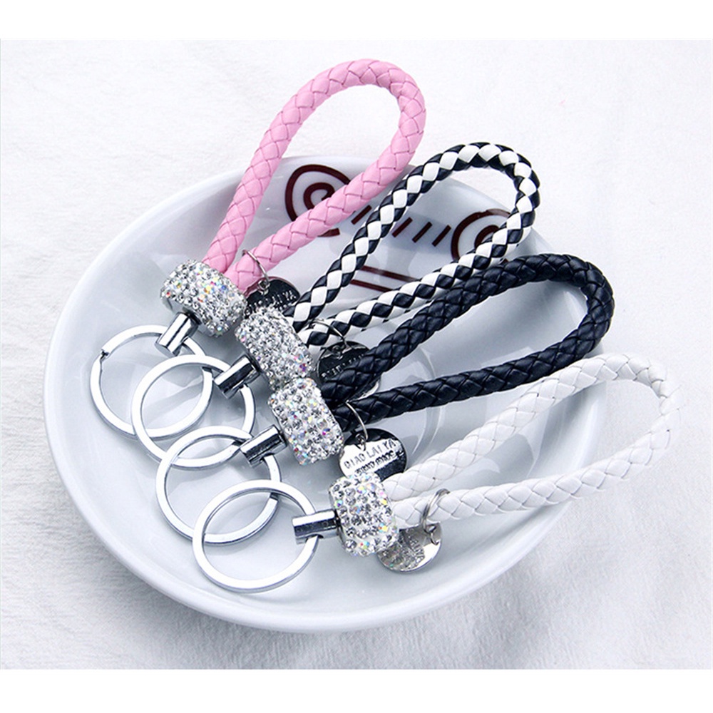Handmade Woven Leather Rope Keychains With Bling Diamond For Women Men Fashion DIY Purse Lanyard Braided Rope Car Key Rings