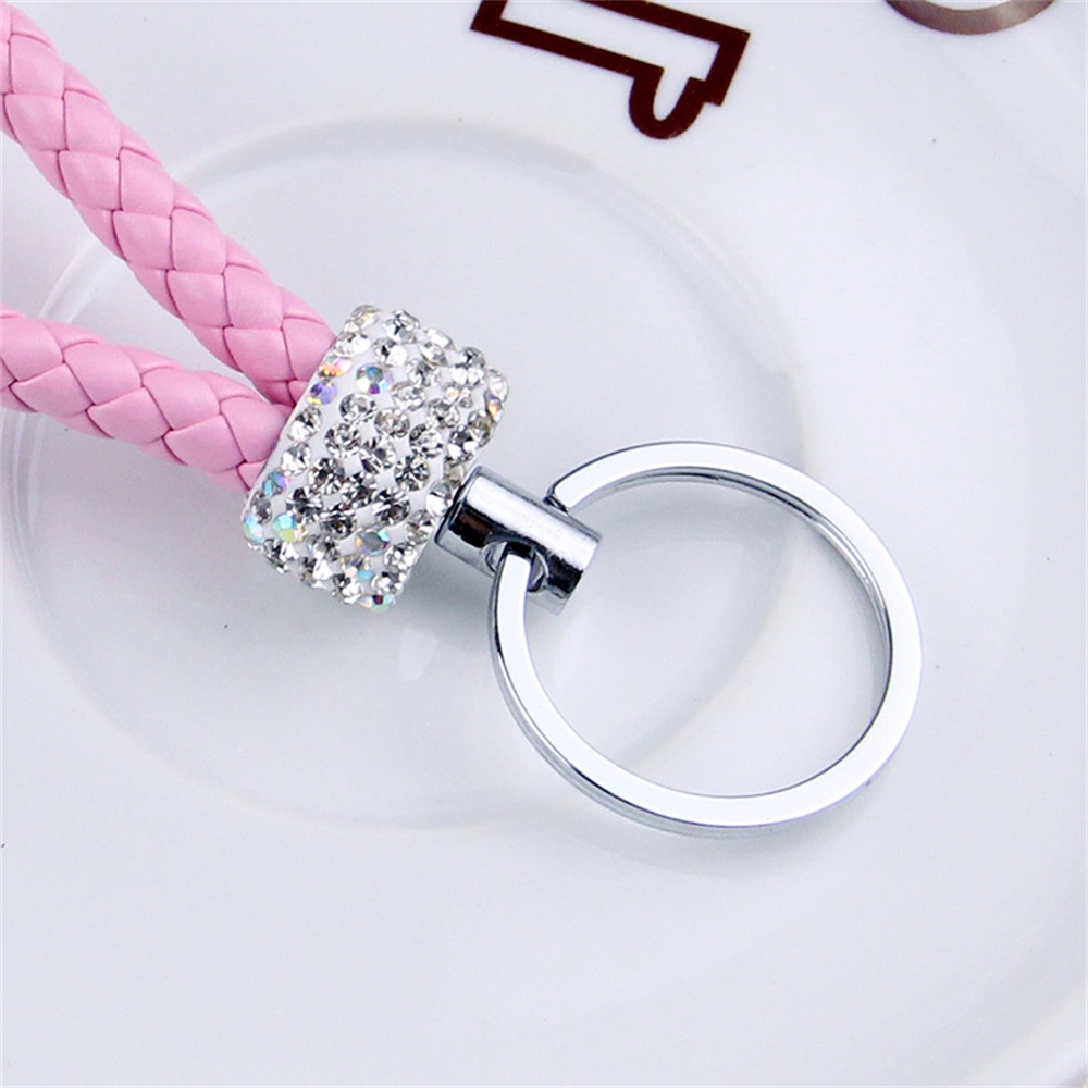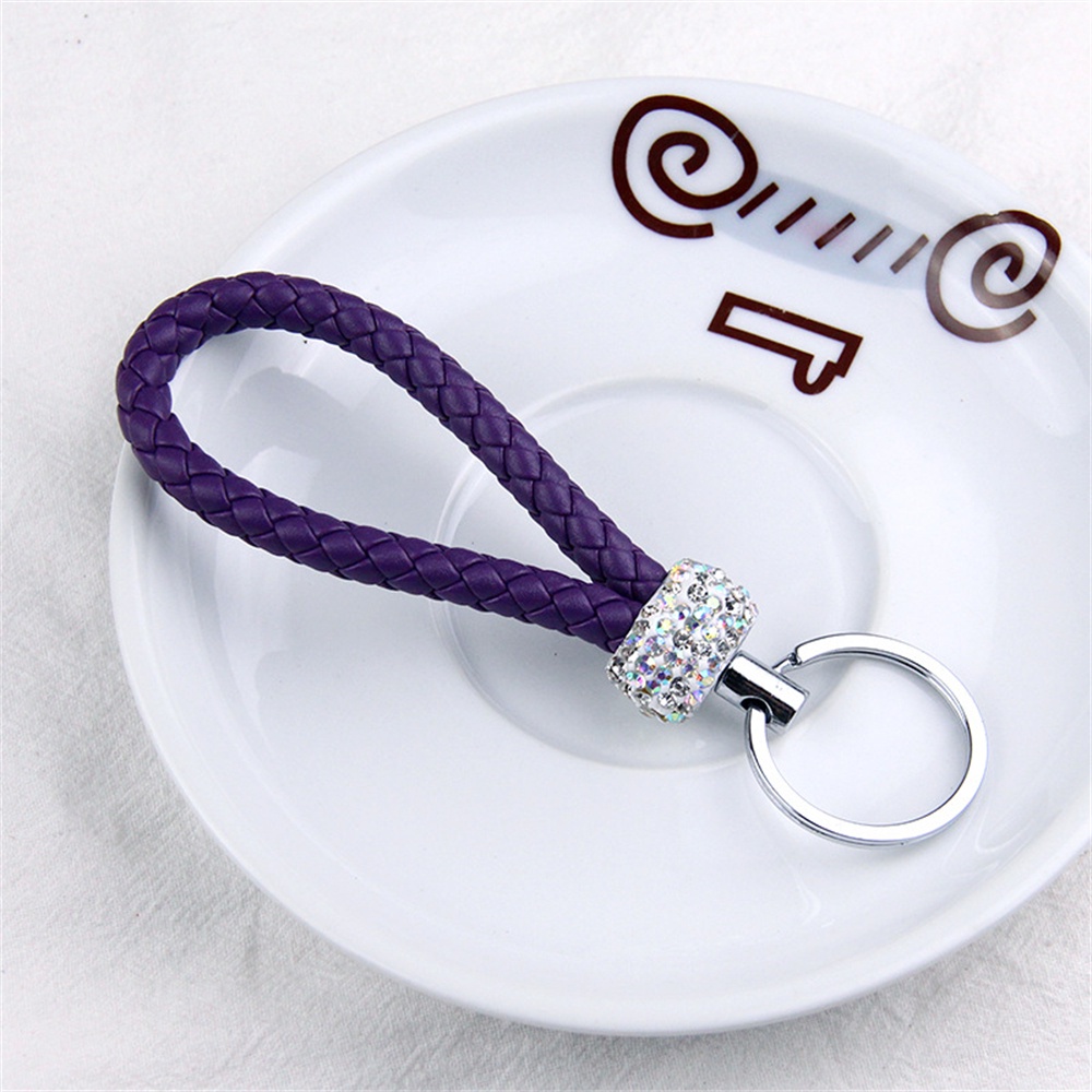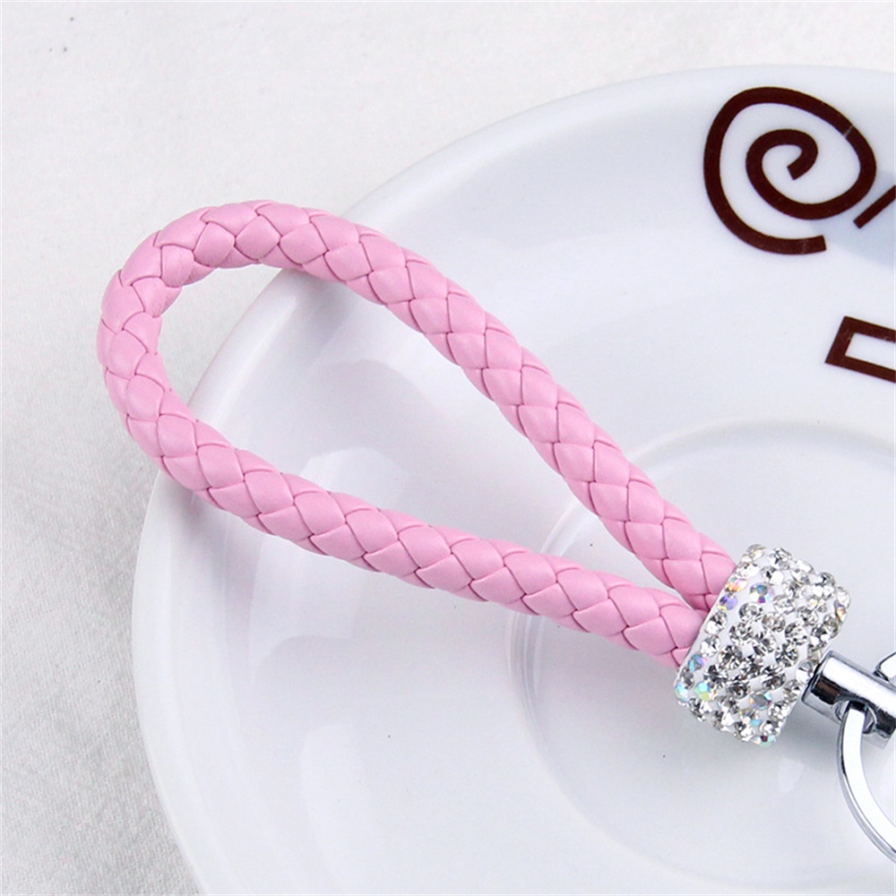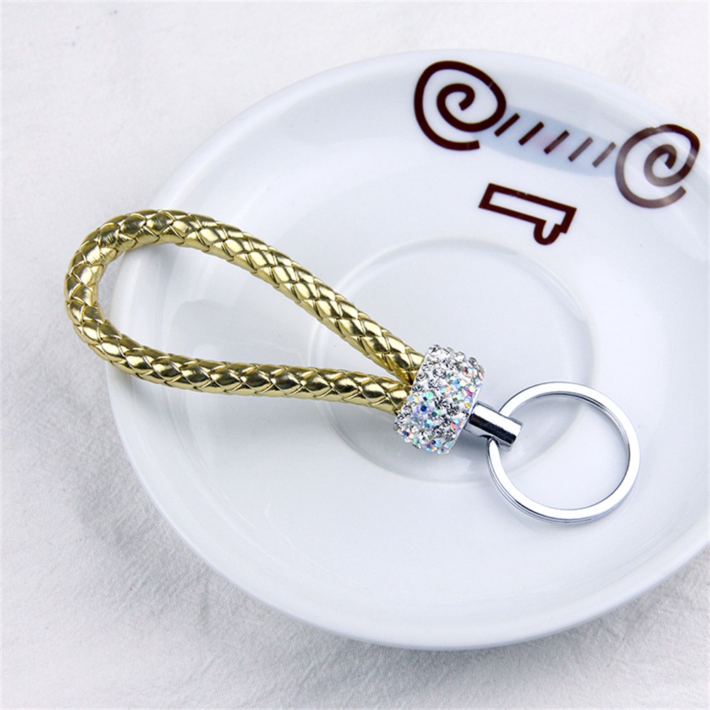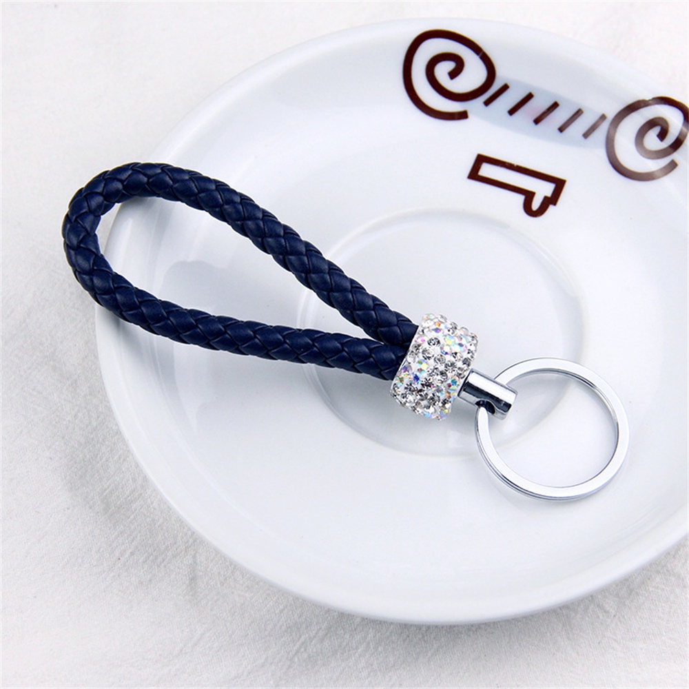 Handmade Woven Leather Rope Keychains With Bling Diamond For Women Men Fashion DIY Purse Lanyard Braided Rope Car Key Rings