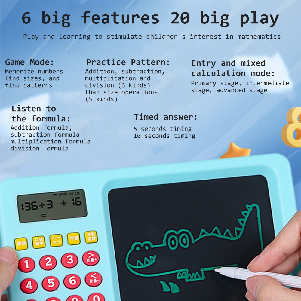 Handwriting Board for Kids Oral Calculator Learning Machine Math Trainer with Drawing Math Game LCD Writing Pad
