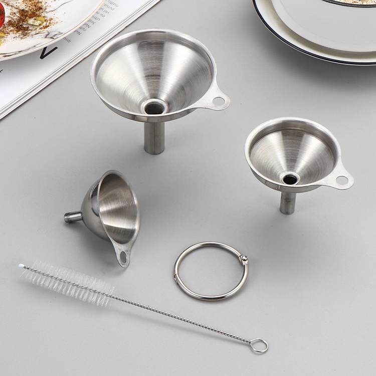 Hangable 304 Stainless Steel Mini Funnel Liquid Solid Packing Small Oil Wine Conical Flask