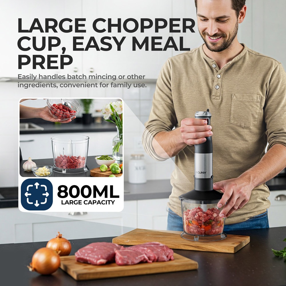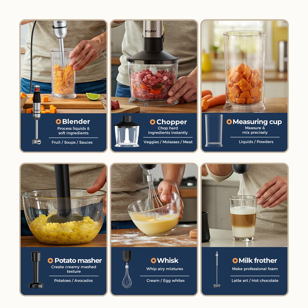 ROUNY 6-in-1 Multi-Purpose Immersion Hand Blender Electric Hand Held Stick Blender Stainless Steel Blades Home & Kitchen MAX 1500W