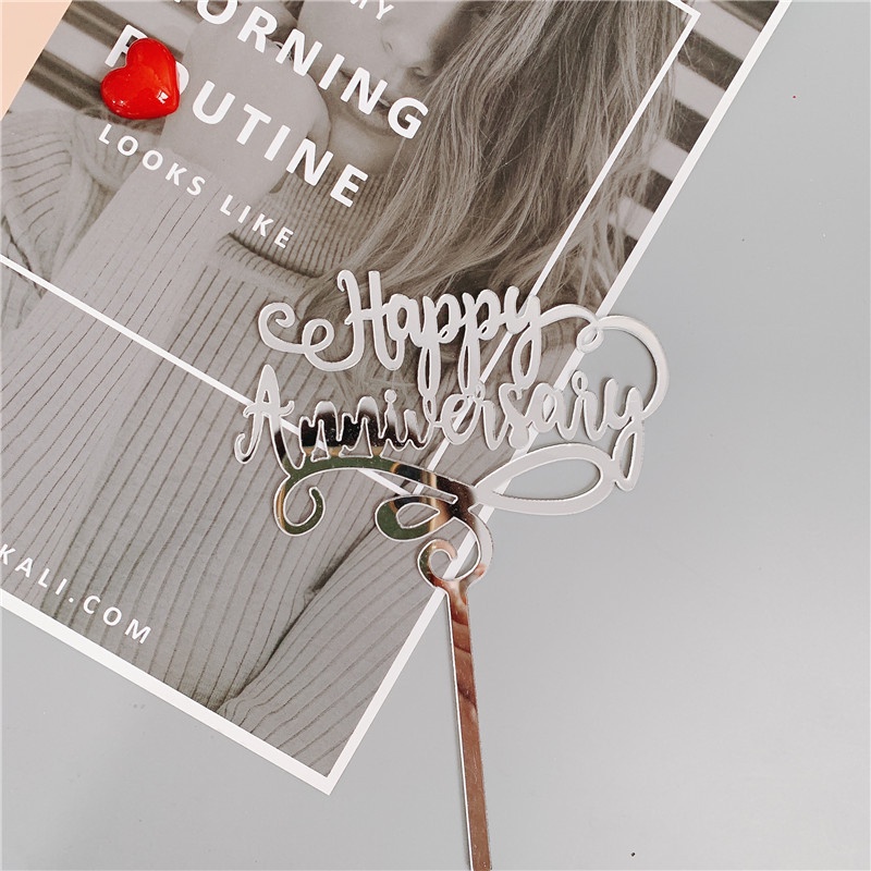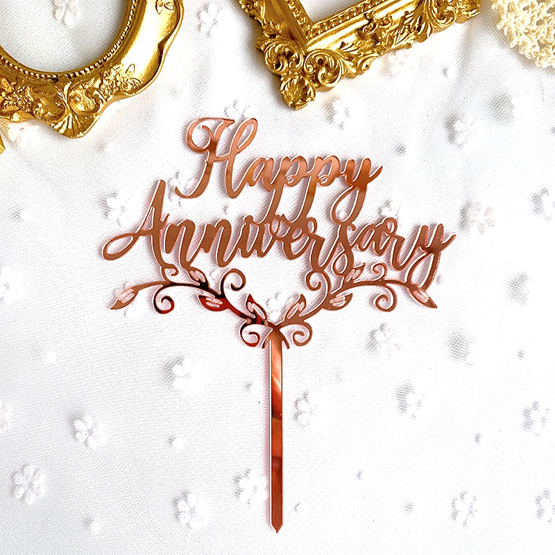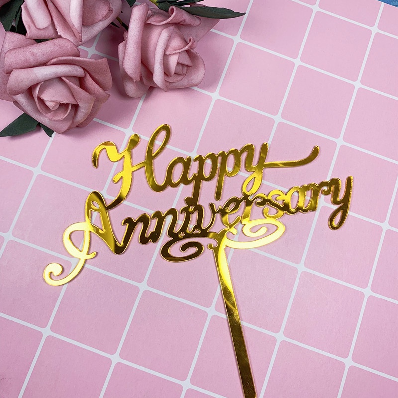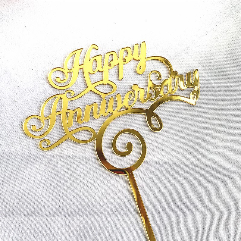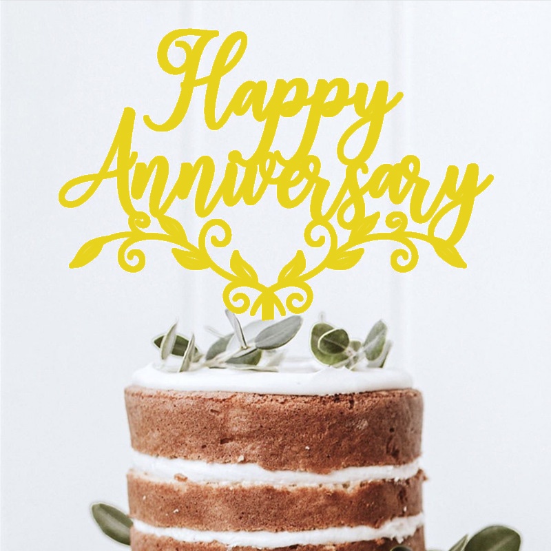 Happy Anniversary Theme Party Cake Toppers Gold Wedding Anniversary Cake Topper for Wedding Anniversary Party Cake Decorations