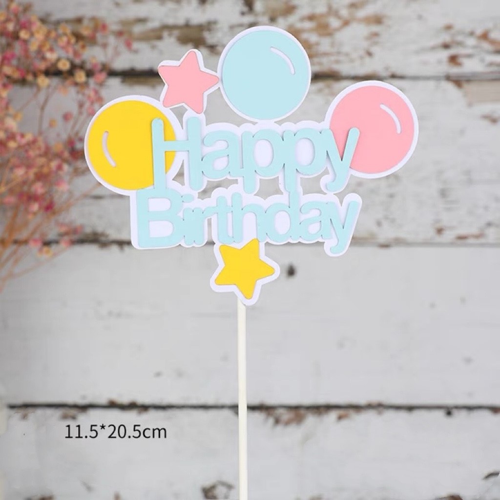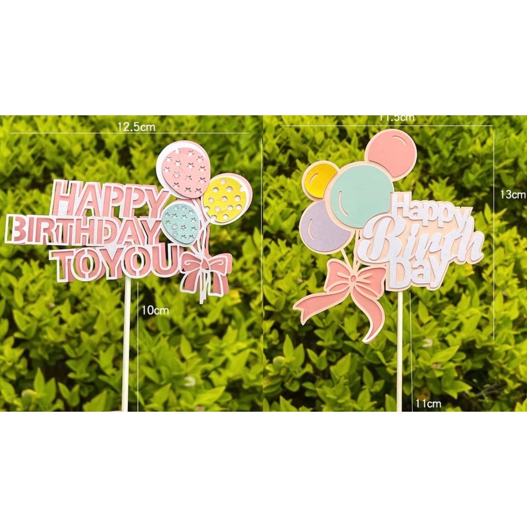 Happy Birthday Balloon Rainbow Pastel Color Cake Topper