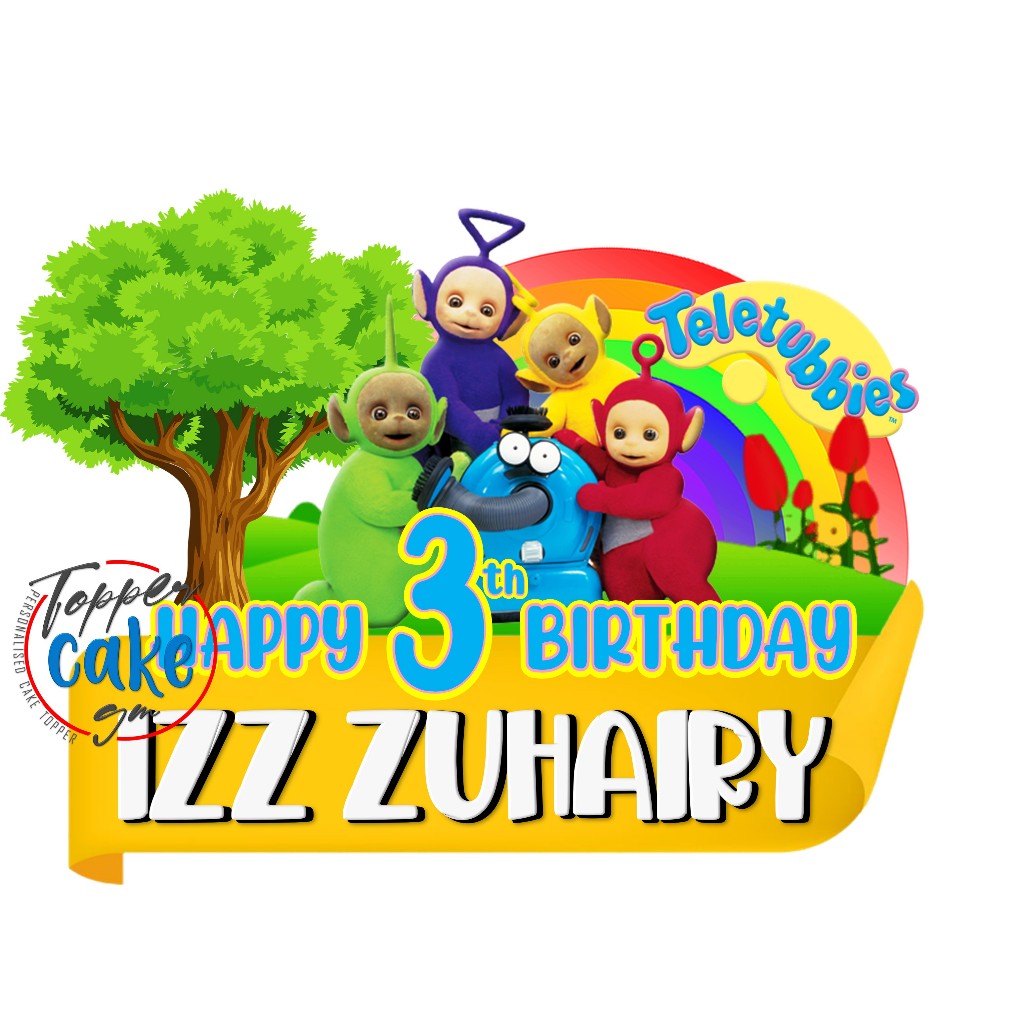 Happy Birthday Topper Cake Cartoon TELETUBBIES (CUSTOM NAME)
