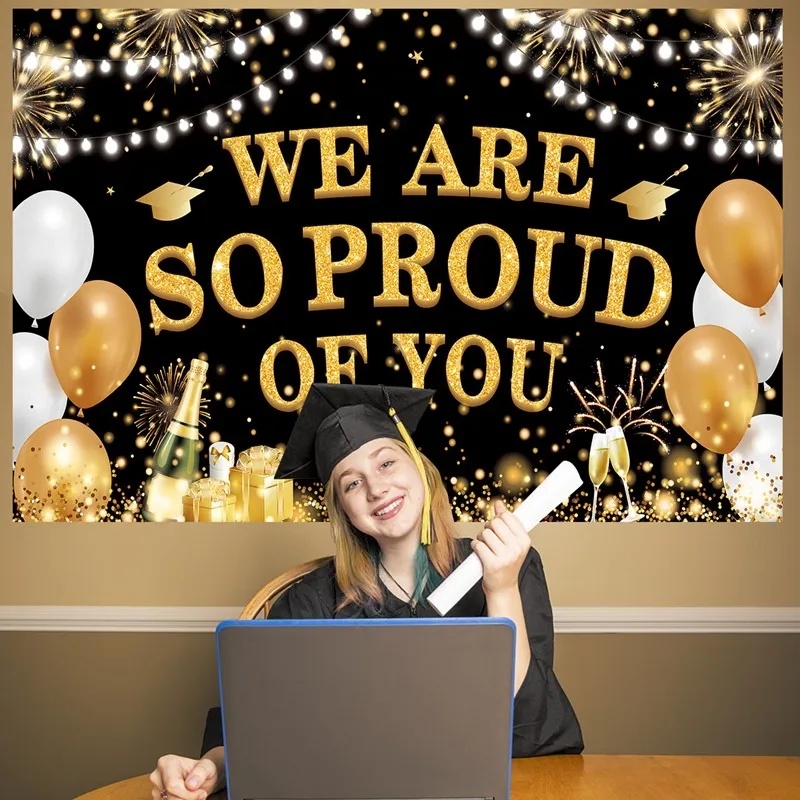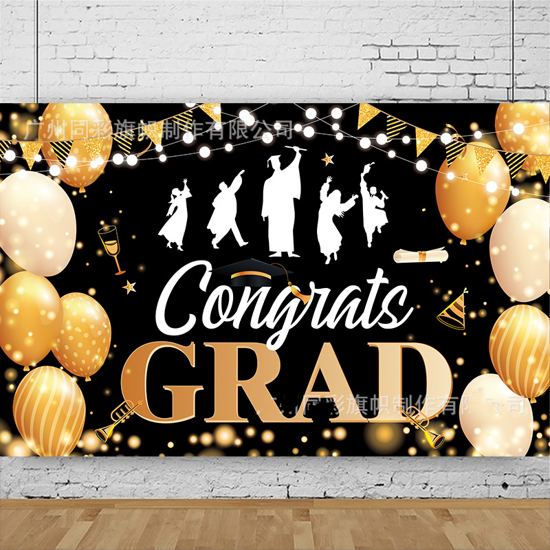 Happy Graduation Backdrop Banner for Photo Class of Congrats Grad Prom Party Congratulations Graduates Gold Balloon Ribbons Background Deco