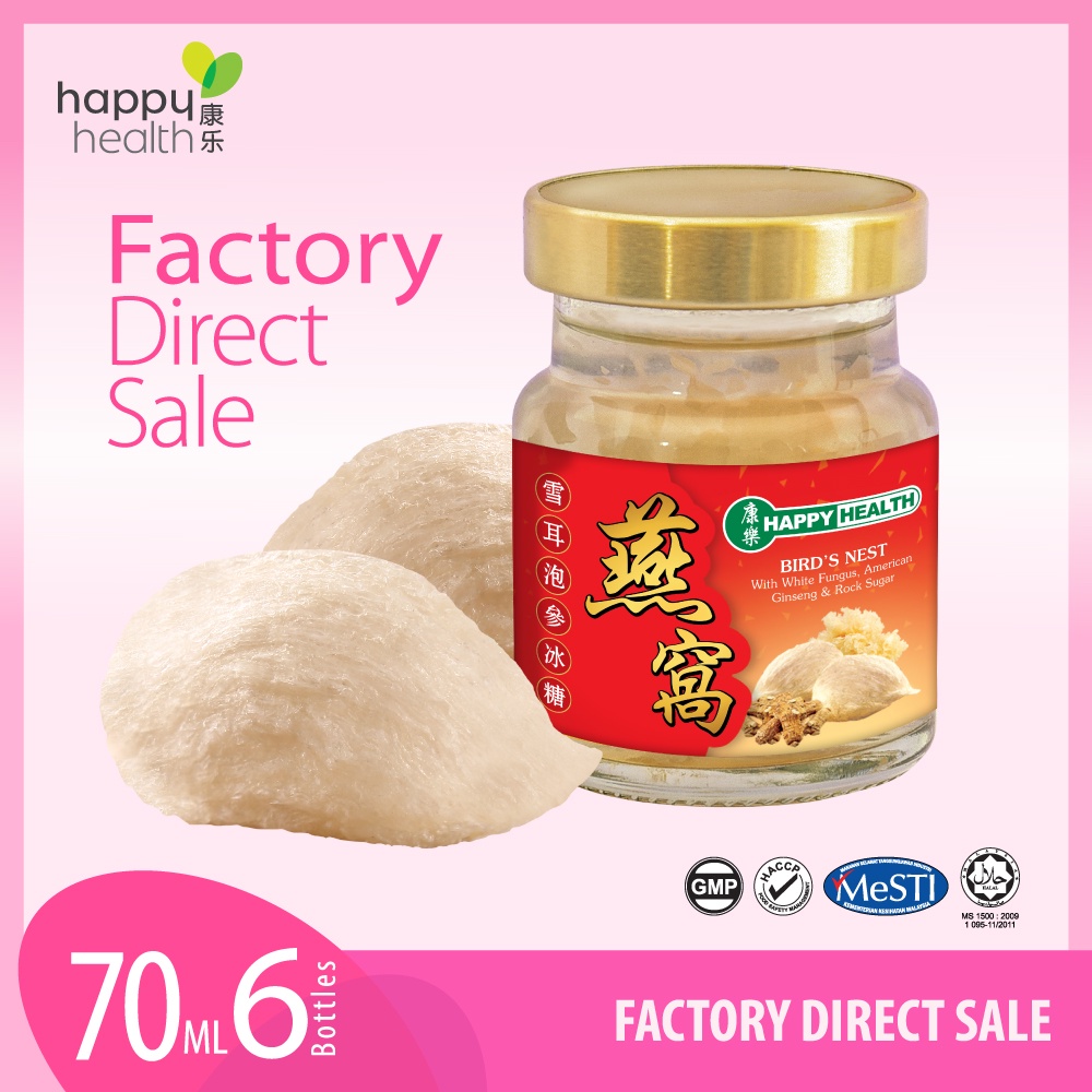 Happy Health® Bird's Nest with American Ginseng, White Fungus & Rock sugar (70ml x 6s) - HALAL SARANG BURUNG 康乐雪耳泡参冰糖燕窝