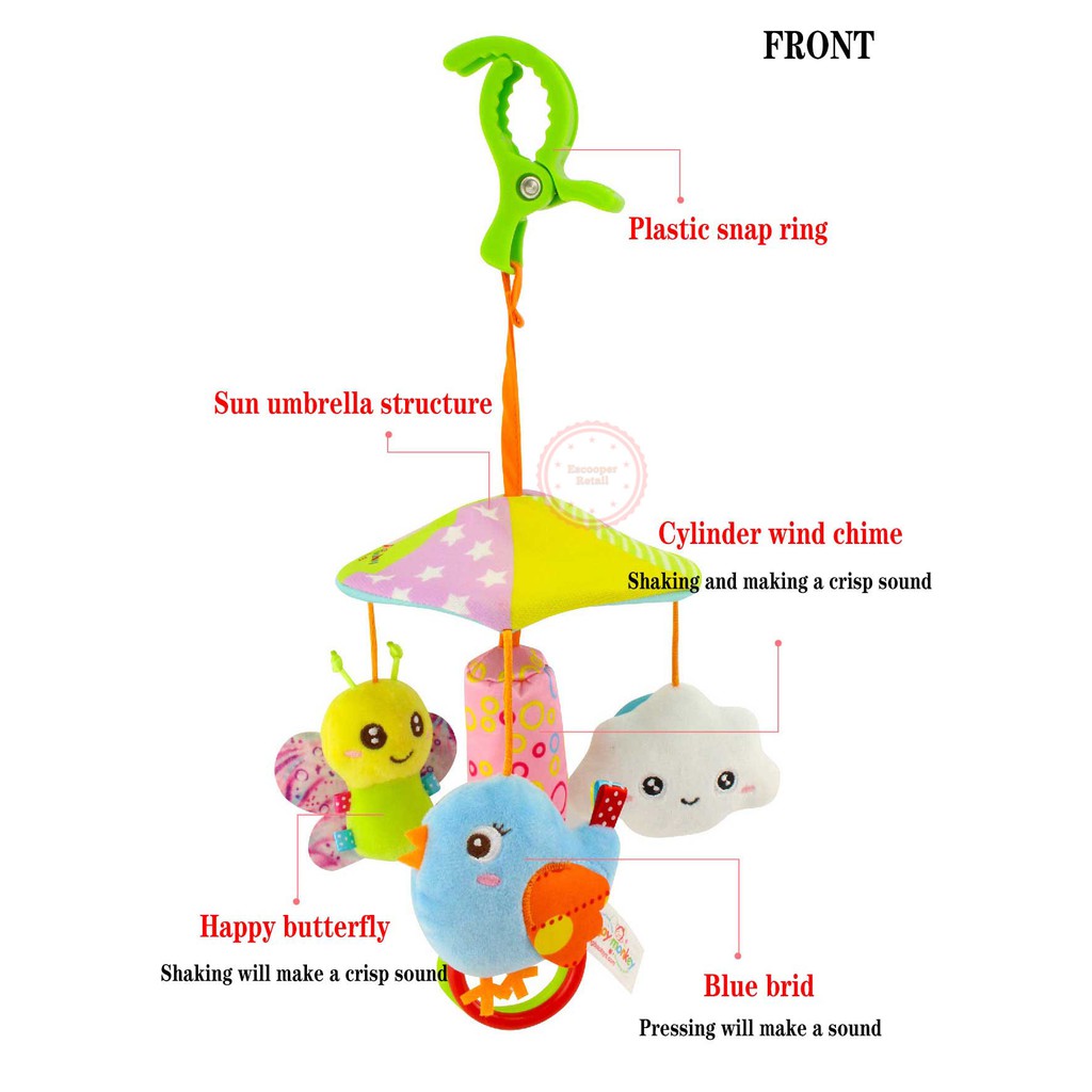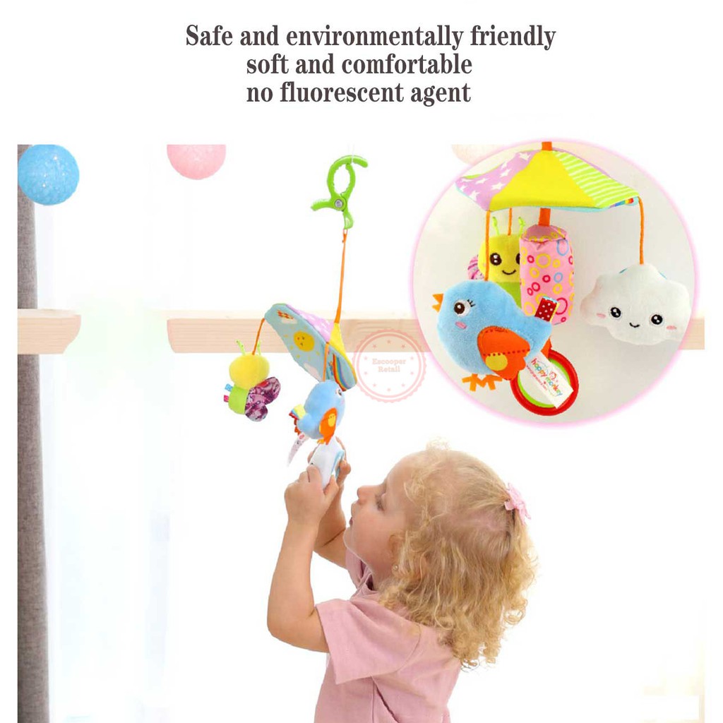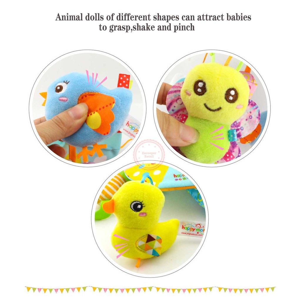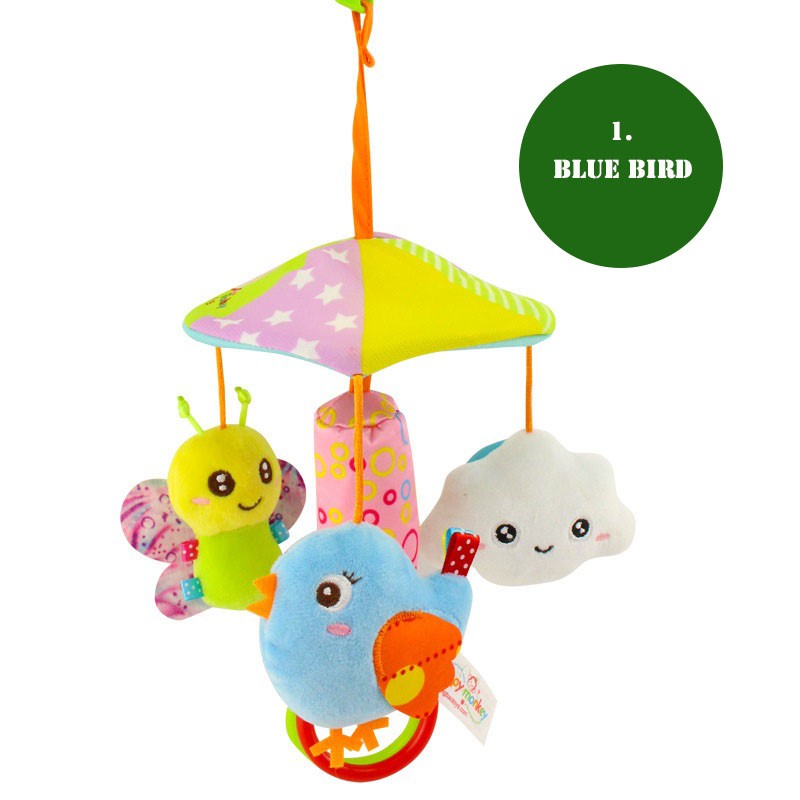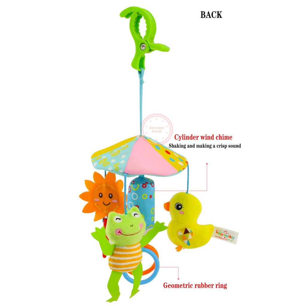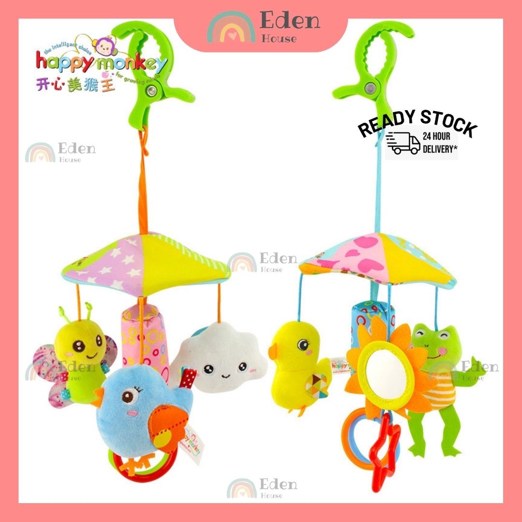 Happy Monkey Baby Toy Animal Stroller Crib Accessories Rotating Make Sound Soft Plush Hanging Rattle Bell Toy