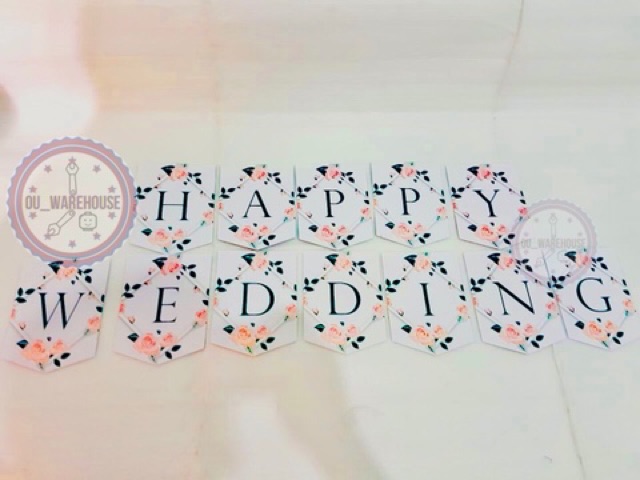 Happy wedding banner - happy wedding bunting flag - wedding banner - wedding banner