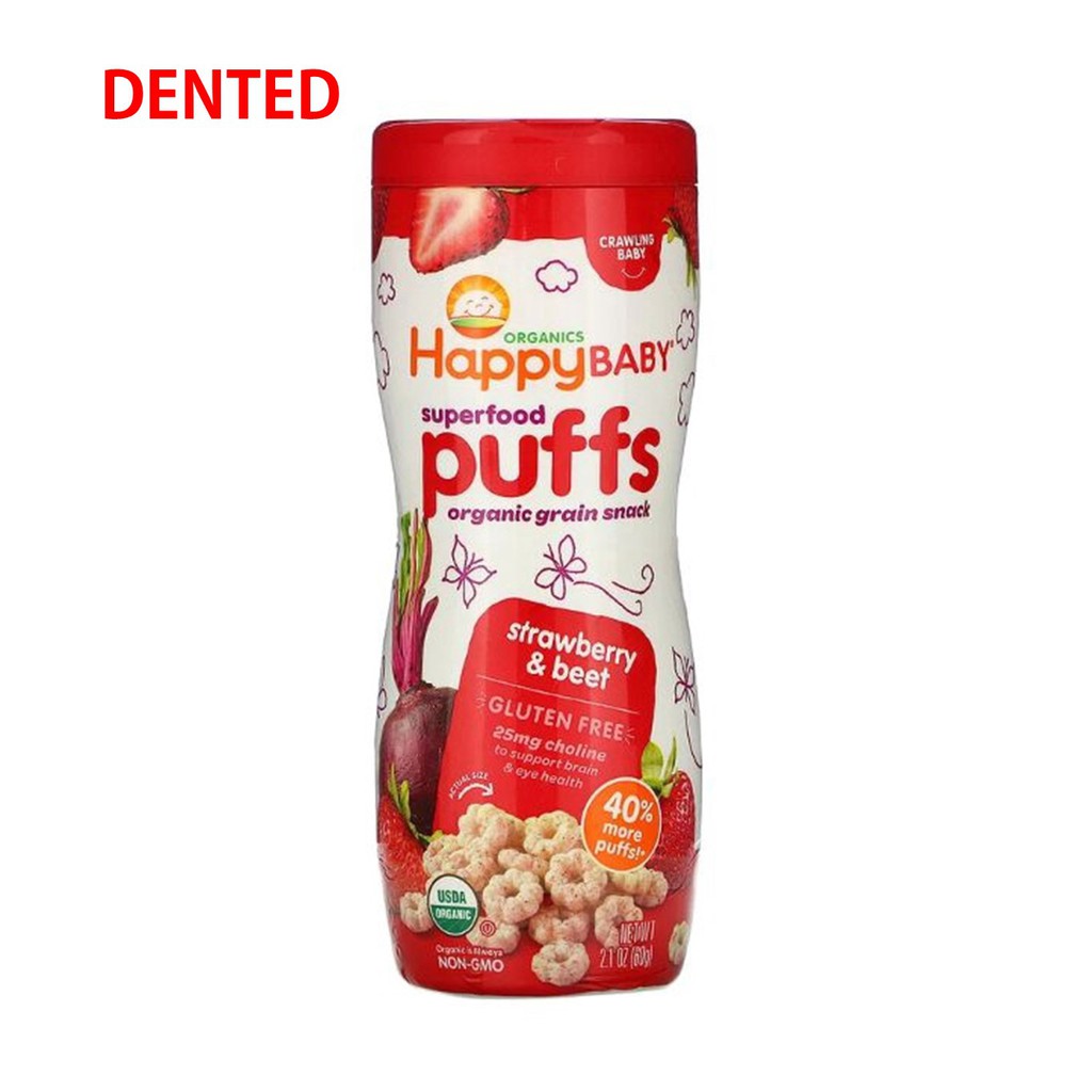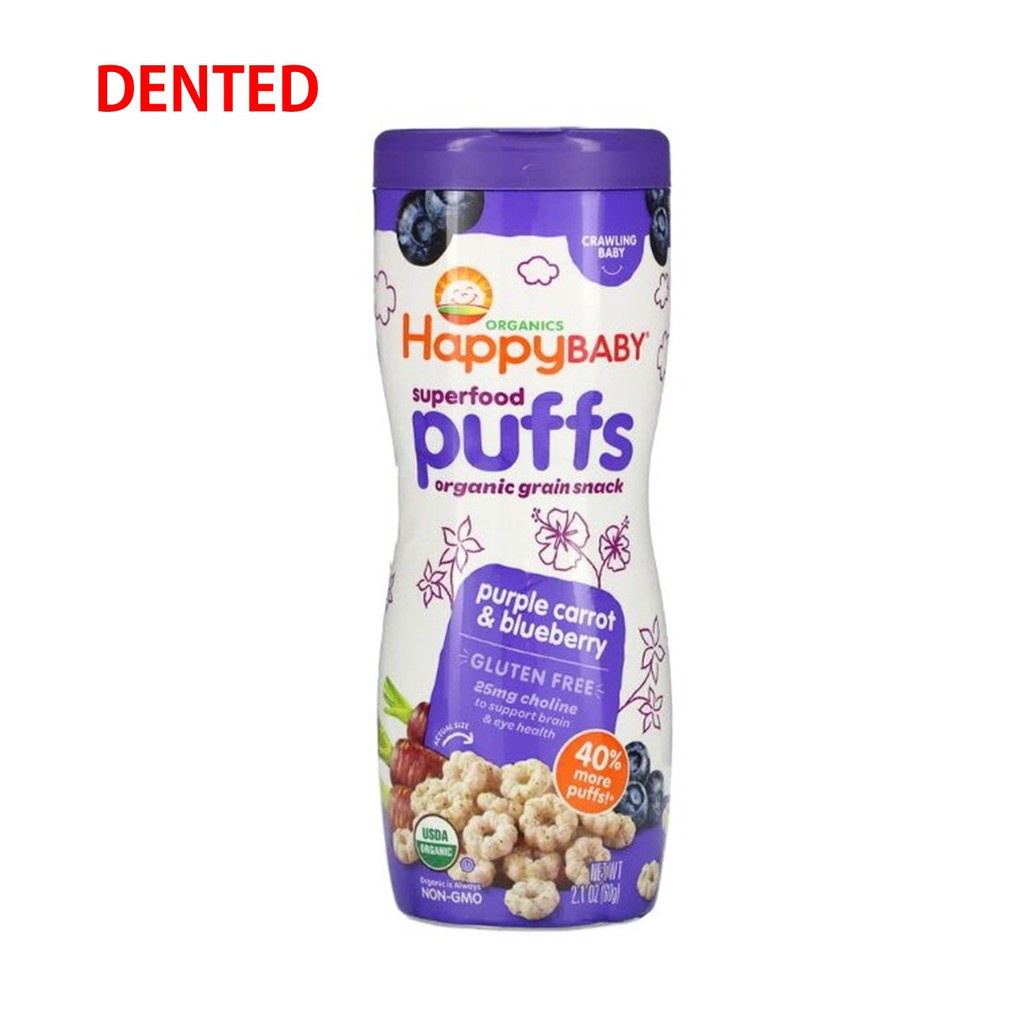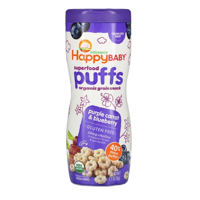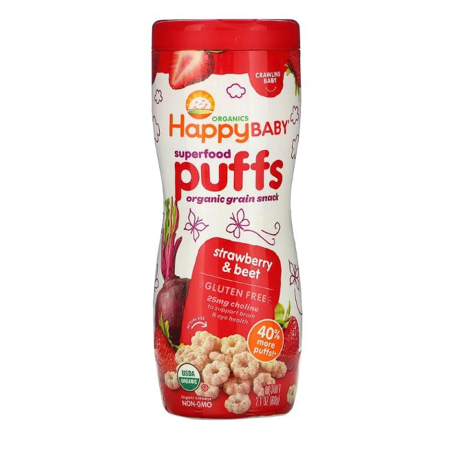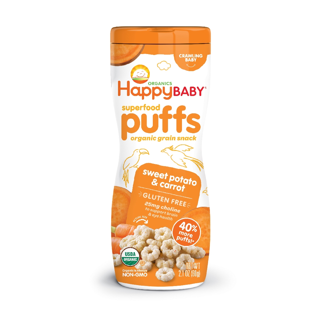 HappyBaby Organic Baby Peachy Puffs Snackers Superfood Blueberry SweetPotato Strawberry Apple Fruits& Vegetabes Crawlers