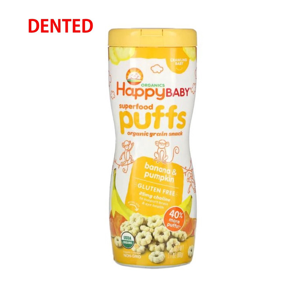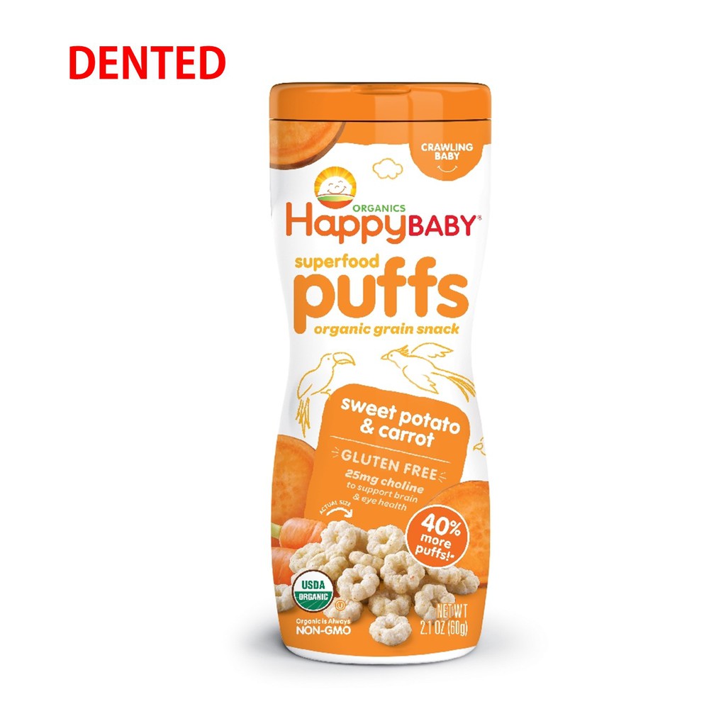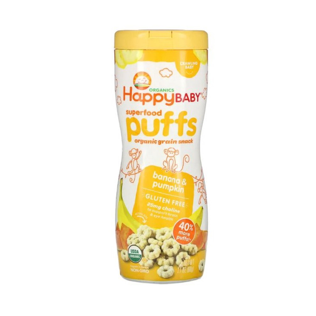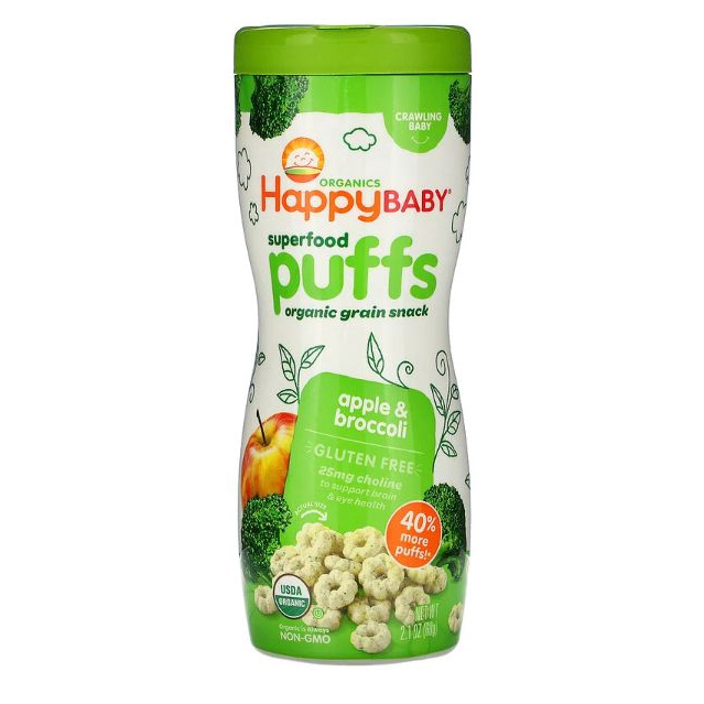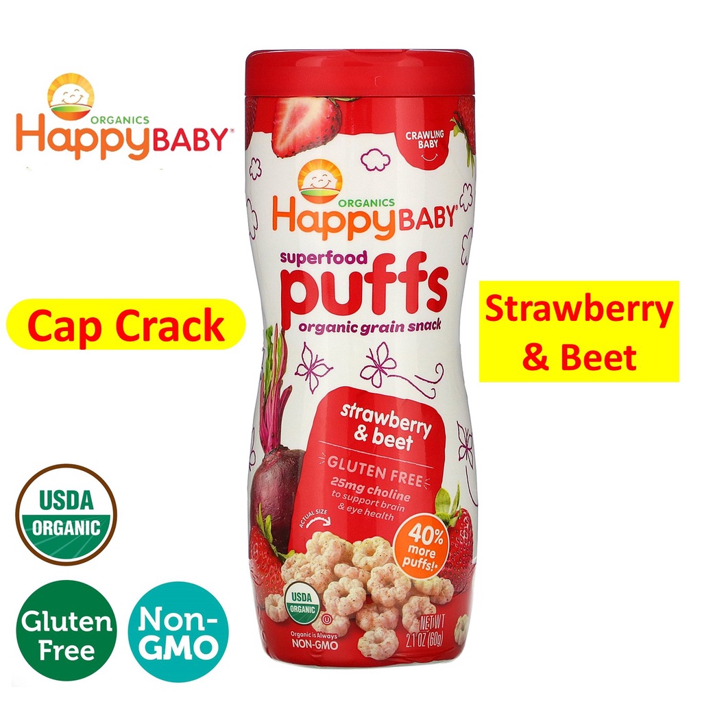HappyBaby Organic Baby Peachy Puffs Snackers Superfood Blueberry SweetPotato Strawberry Apple Fruits& Vegetabes Crawlers