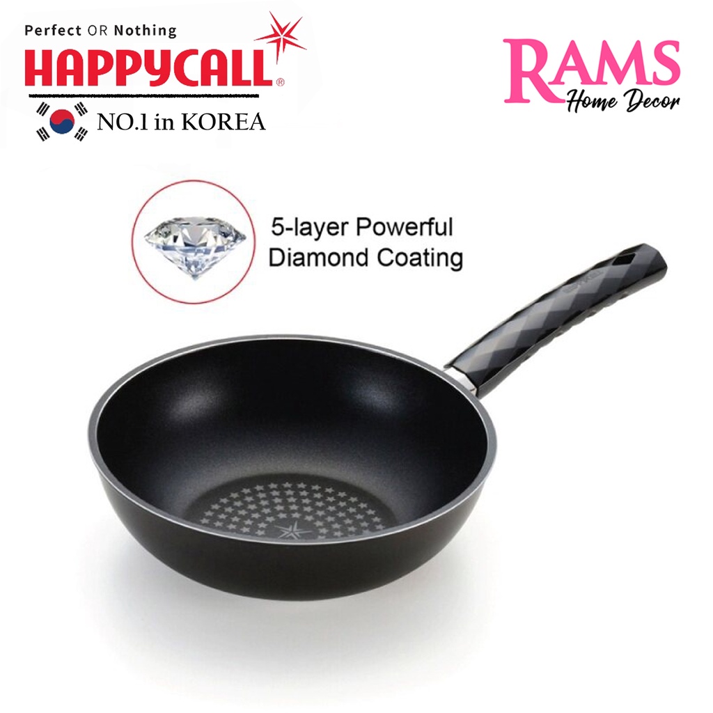 Happycall 24cm Non Stick Diamond Wok Pan / Kuali Dalam Korea / Kuali Tak Melekat / Kuali Dalam Happycall