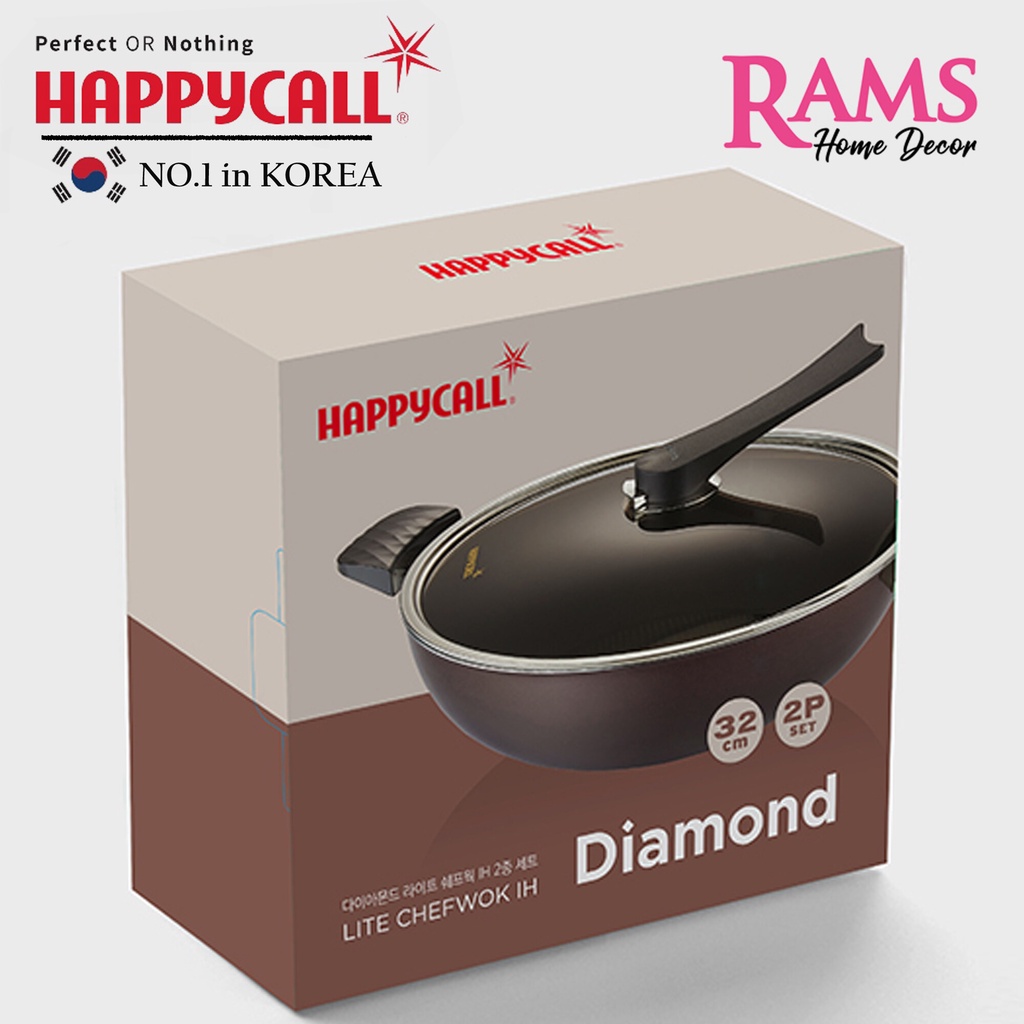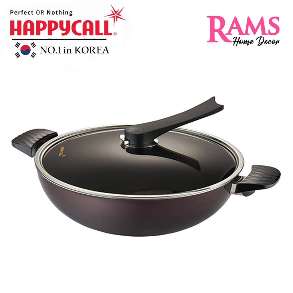 Happycall 32cm Induction Non Stick Diamond Lite Chef Wok with Glass Lid / Kuali Non Stick / Kuali Korea / Kuali Dalam