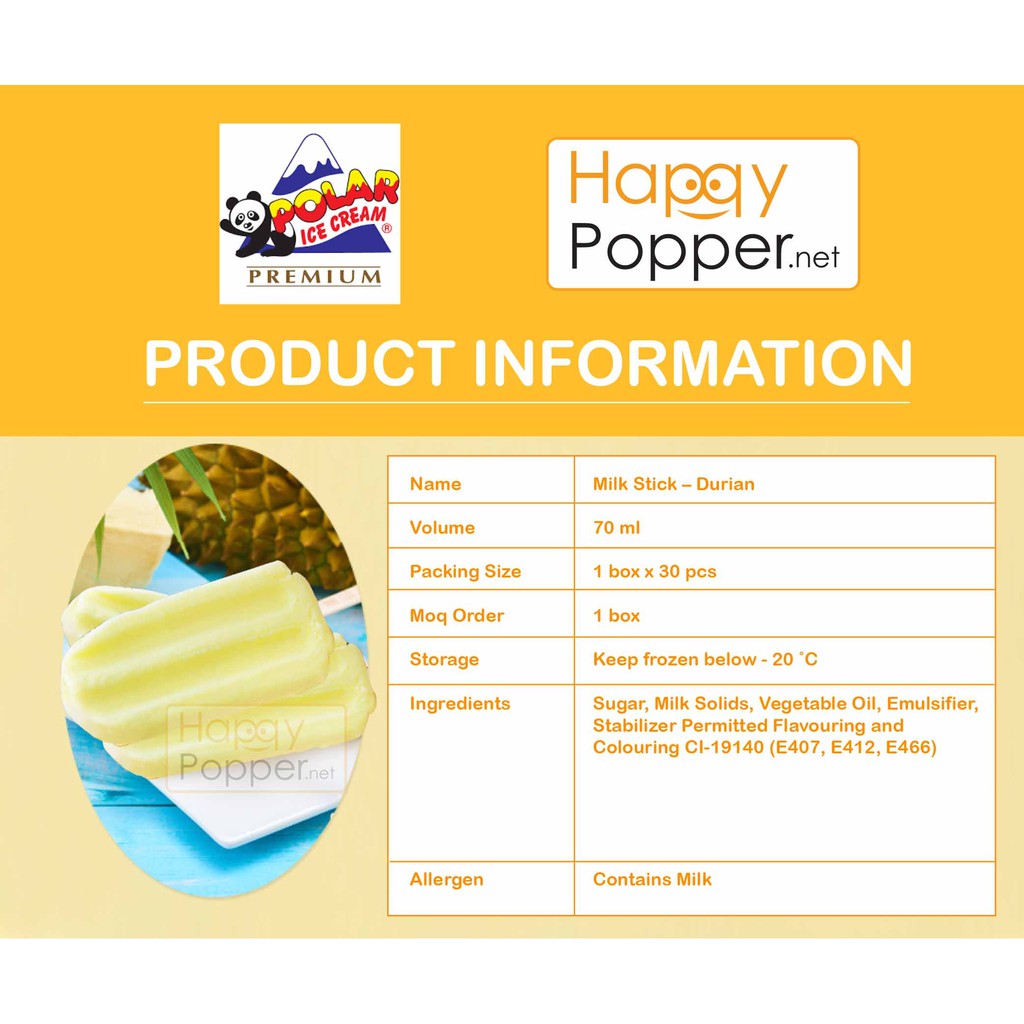HAPPYPOLAR Polar Ice Cream Durian Flavour 70ml x 30 pcs Milk Stick Ice Cream Frozen Snack Aiskrim 熊猫冰淇淋