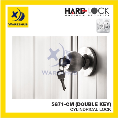 Hard Lock 5871 Cylindrical Door Lock Set With Double Keys Stainless Steel Round Ball Knob Set Pintu Tombol Lock