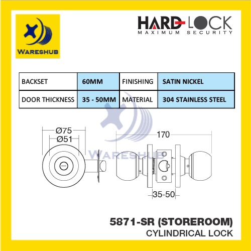 Hard Lock 5871 Cylindrical Door Lock Set With Keys Stainless Steel Storeroom Door Knob Storeroom Lock