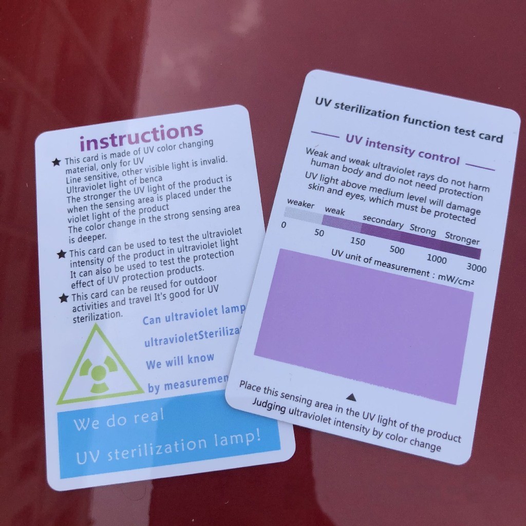 Hard Plastic Card UV / UVA / UVB Test English Version (UV Light Test PVC Plastic Card / UV Test Sunscreen)