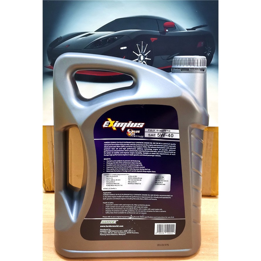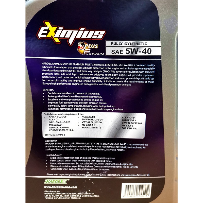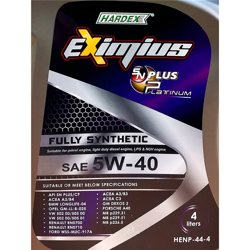Hardex Eximius SN PLUS Platinum Fully Synthetic Engine oiL SAE 5w-40 SN PLUS timemax