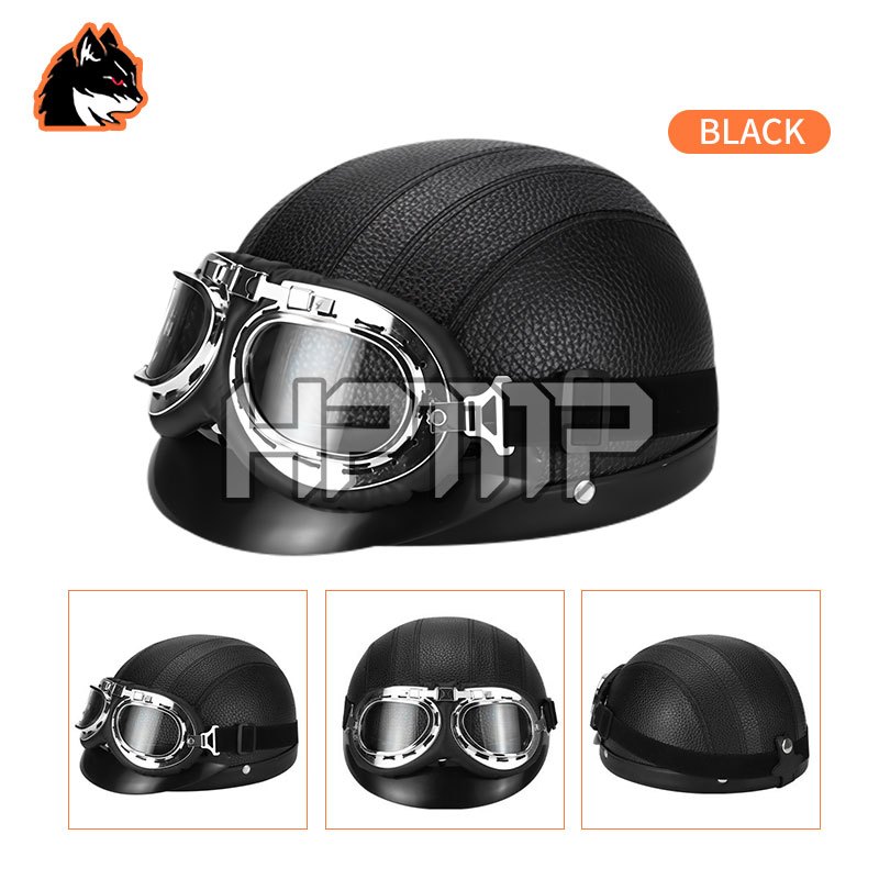 Harley Retro Synthetic Leather Half Face Motorcycle Open Face Helmet Helmet With Goggles Universal