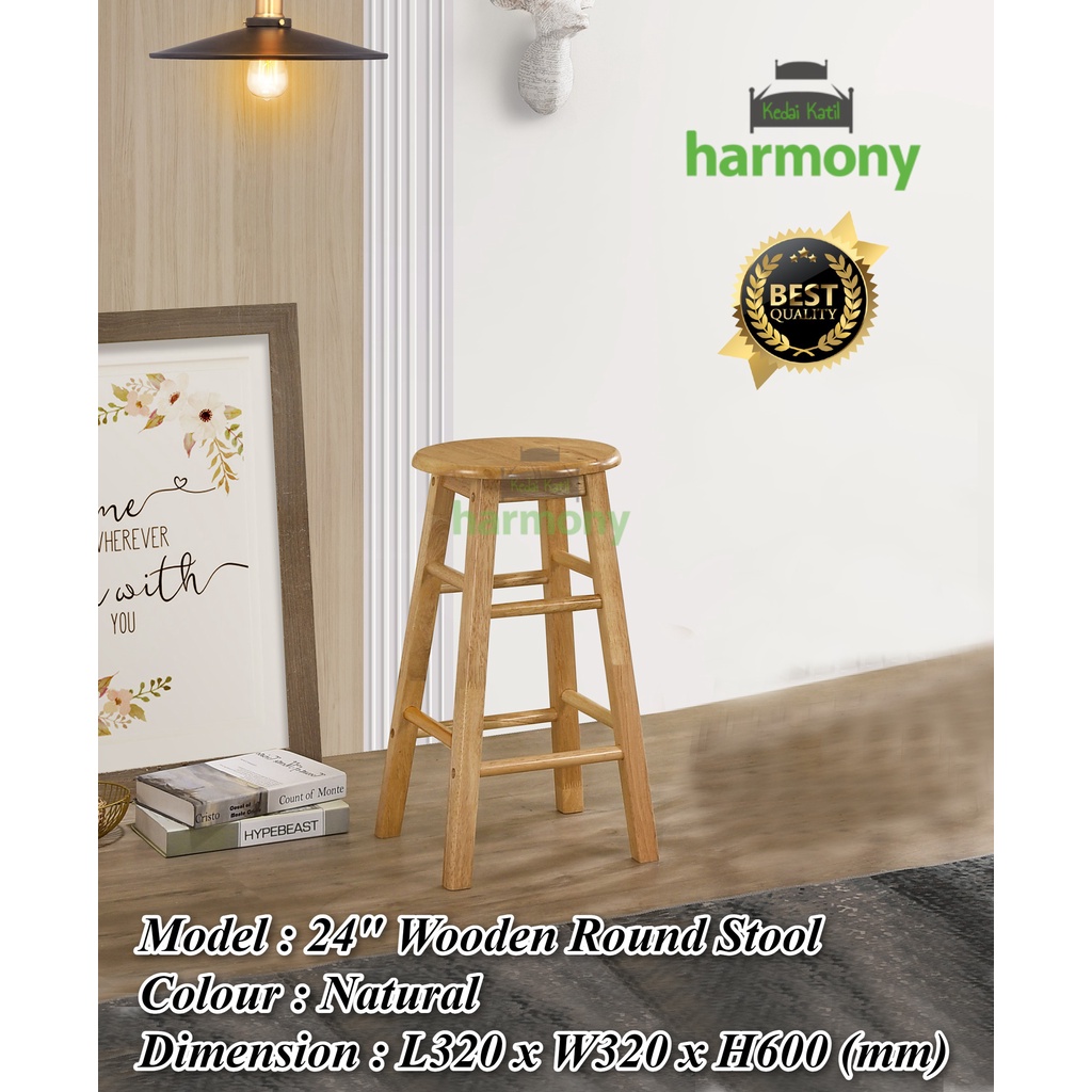 Harmony 24" Solid Rubber Wood Round Stool / High Quality Stool Chair / 24 Inch Stool / Kerusi Kayu Tinggi / Bar Stool