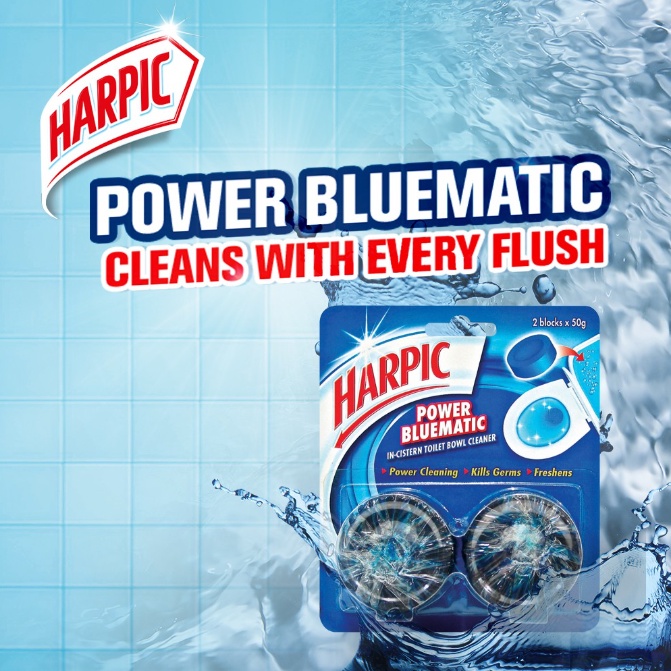 Harpic Power Bluematic Toilet In-Cistern Block Clearner (50g x 2) [Value Pack]