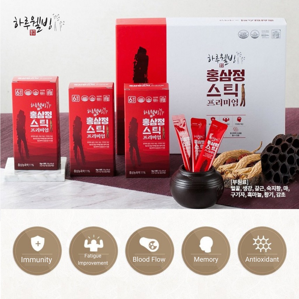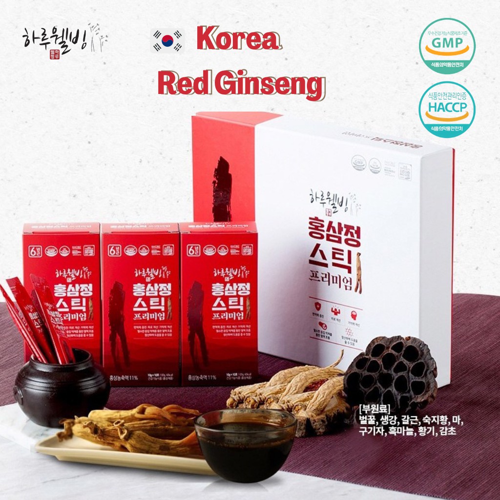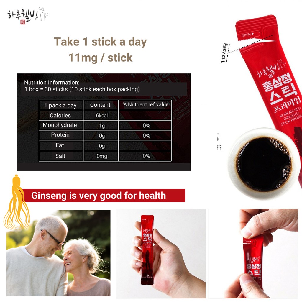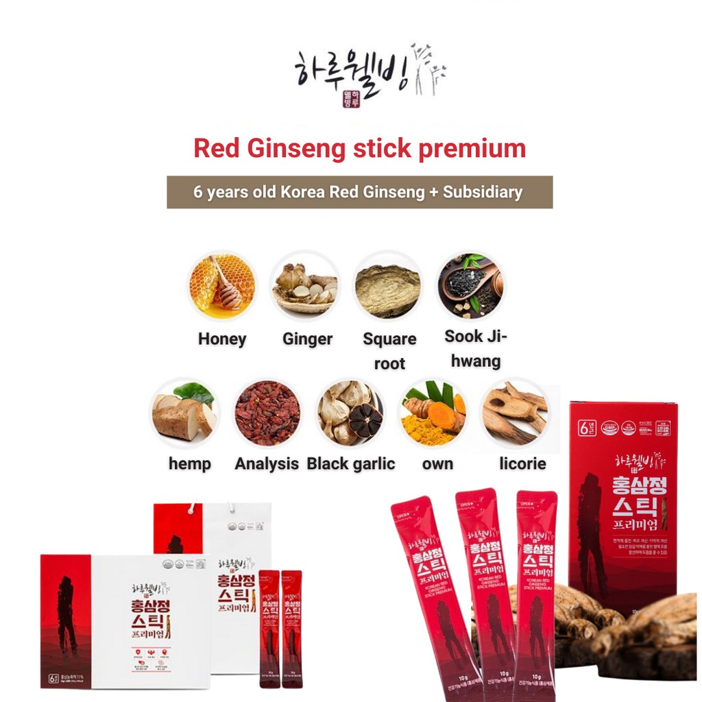 Haru Well-being 6 year old root Red Ginseng Jeong Stick Premium Ginseng 11mg (1box 30sticks 3 small box)