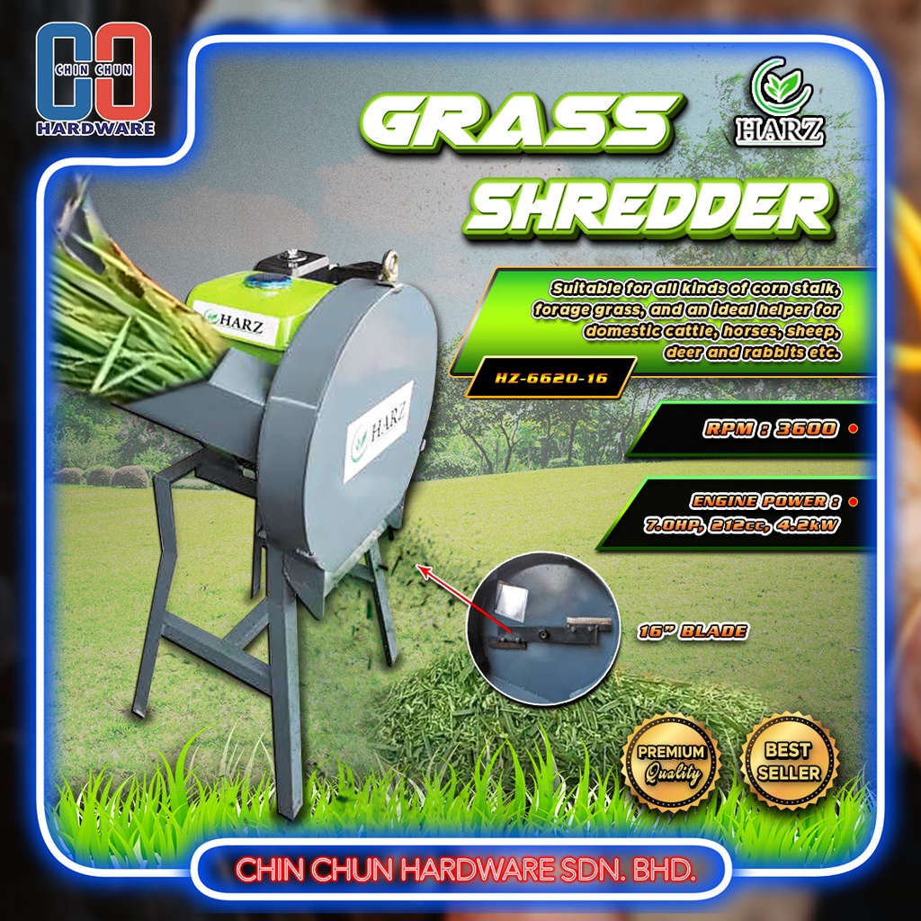 Harz HZ6620-16 Grass Shredder 7.0hp 212cc 4.2kW|Chaff-Cutter|Cow Goat animal food|Mesin Kisar Rumput Kambing Lembu