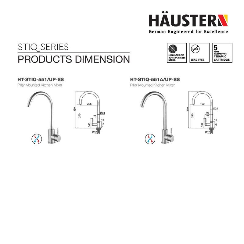 Haustern Single Level Kitchen Faucet With U Spout HT-STIQ-502/UP-SS