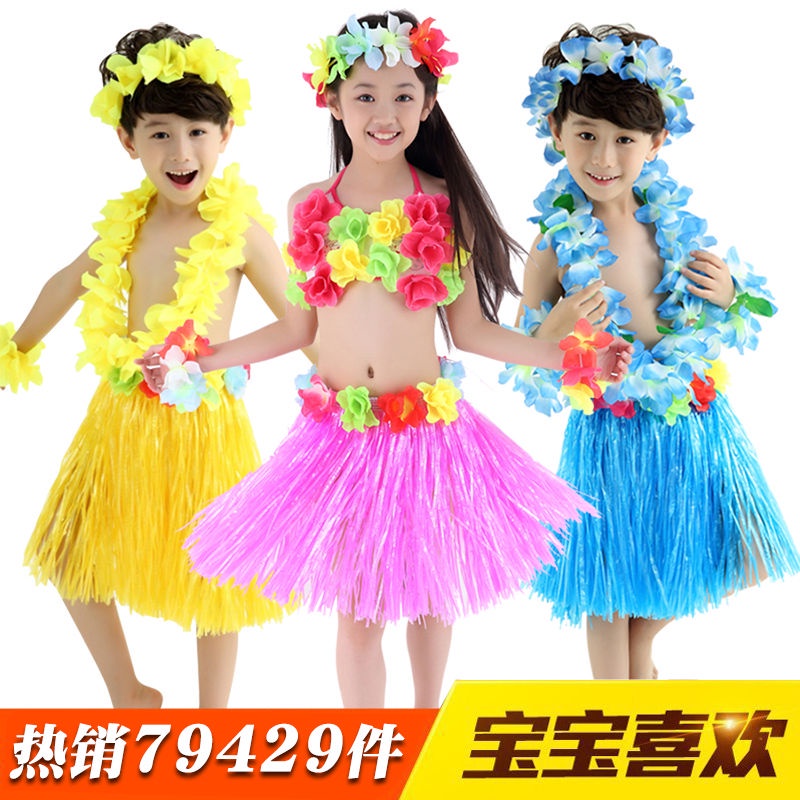 Hawaiian Grass Skirt Dance Suit Performance Costume Kindergarten Straw