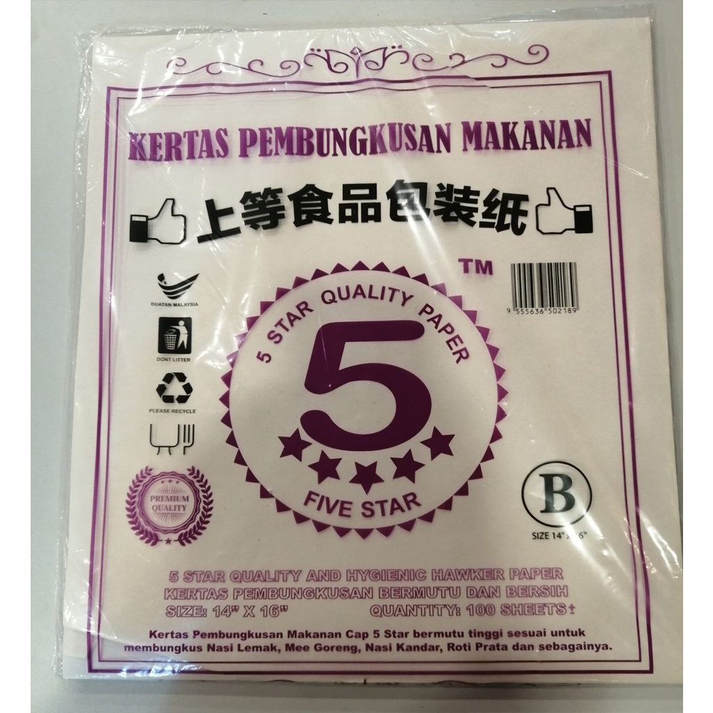 Hawker Paper [Kertas Pembungkusan Makanan Bermutu dan Bersih] Size B, D [100pcs]