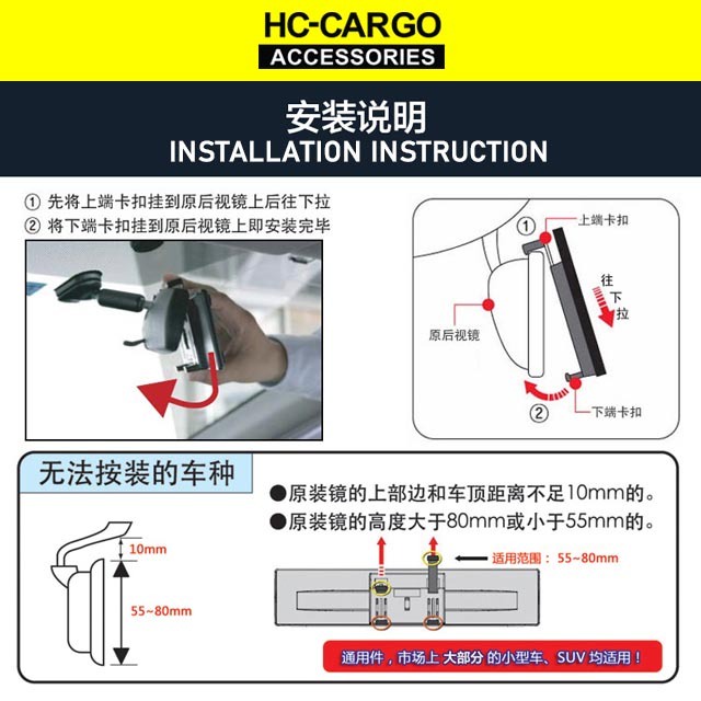 HC Cargo Car Rear View Room Mirror Anti-Glare Ultra-Wide Field View Flat and Convex (200mm/300mm)