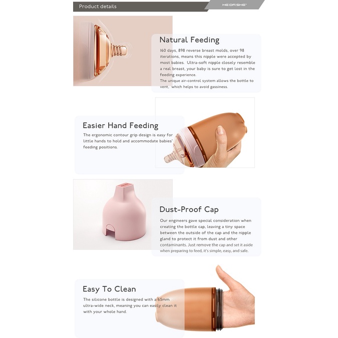 HeOrShe Antibacterial Classic He Or She Ultra Wide Neck Milk Bottle 5oz PINK GREY BLACK WHITE