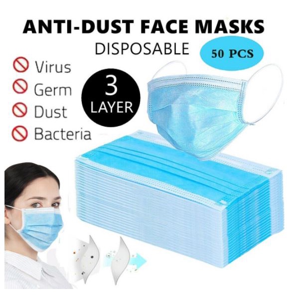 Headloop 3 ply Mask 50pcs Mask 3ply Face Mask Hijab Mask Earloop Adult Face Mask READY STOCK Protective Face Mask 3ply