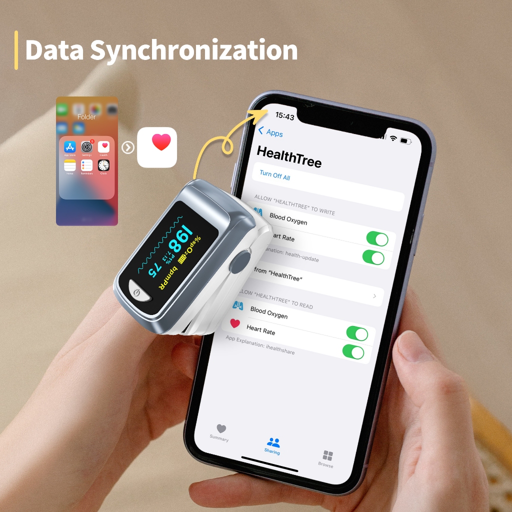 HealthTree Care Bluetooth Pulse Oximeter Fingertip SpO2 Blood Oxygen Saturation Monitor with Heart Rate and Pulse Bar Graph Connect to Phones Auto Detection for Adults Continual Measure Oxymeter with FREE Batteries and Lanyard JKS50C Blakc/Grey