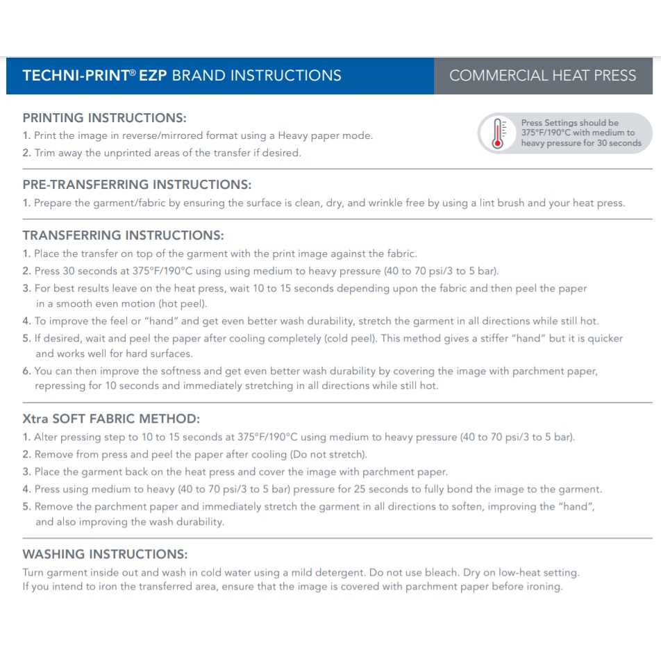 Heat Transfer Paper- A4/ A3 size- For Laser Printer & Light Colour T-shirt Use - Techniprint EZP , Laser Light Transfer