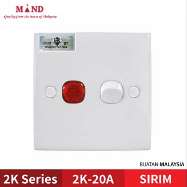 Heater Switch Mind 2K Series 1 Gang 20A Double Pole Water Heater /Air Cond. Switch with Neon