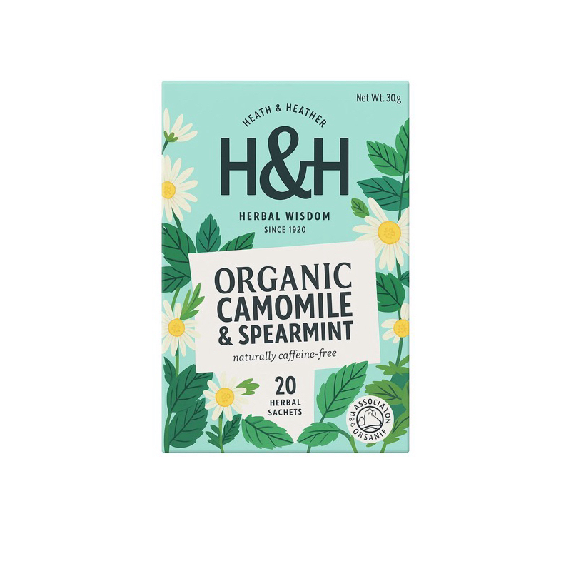 Heath & Heather Organic Tea Teh, Organik Chamomile & Pudina Spearmint – 20 Uncang