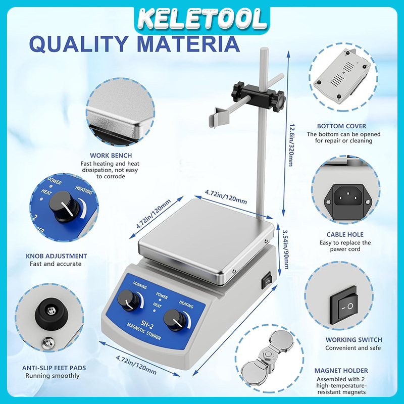 Heating Magnetic Stirrer Hot Plate 2000mL Lab Stirrer Mixer with Stir Bar 2000RPM Stir Hot Plate