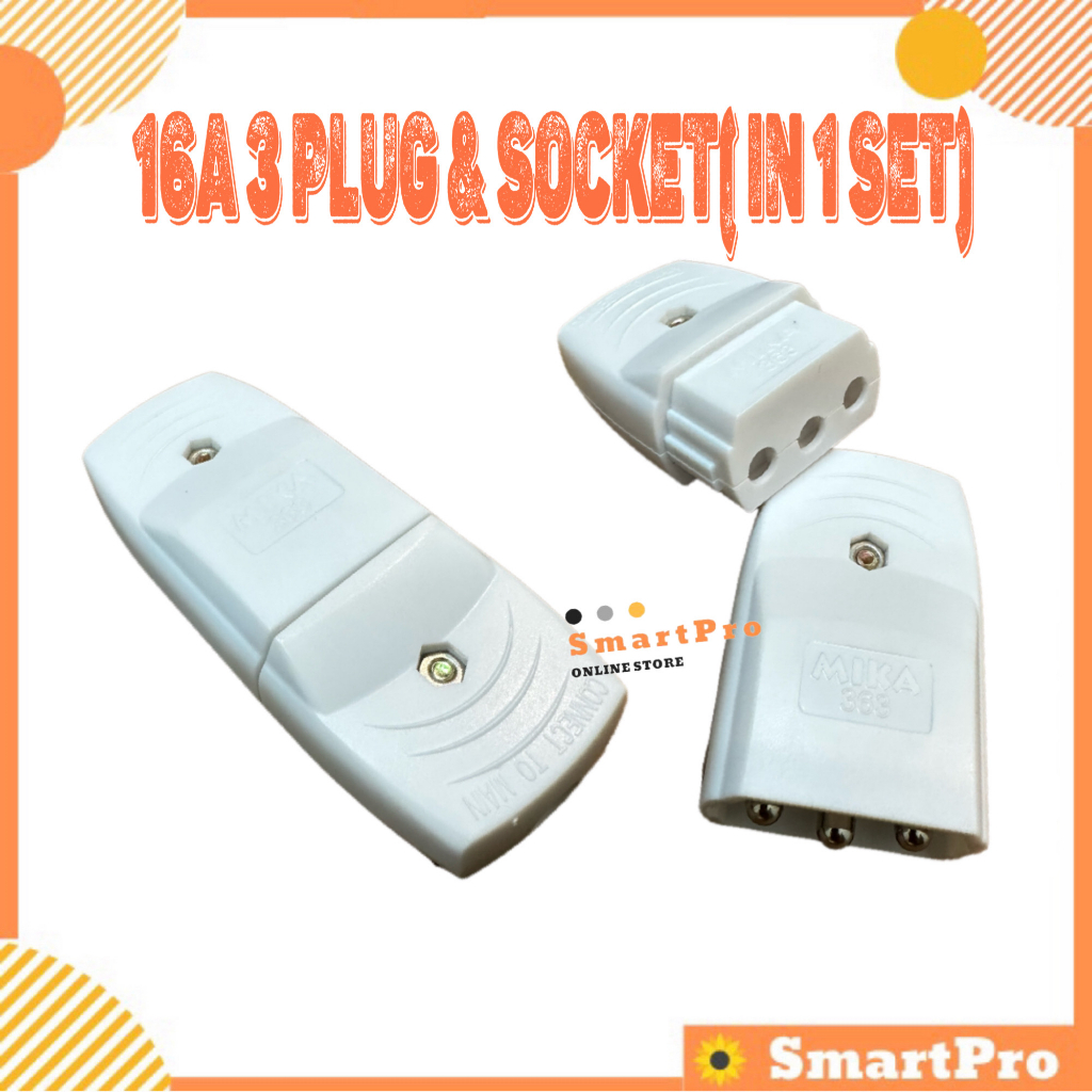Heavy Duty 16A 3 Pin Plug and Socket Connector In 1 Set