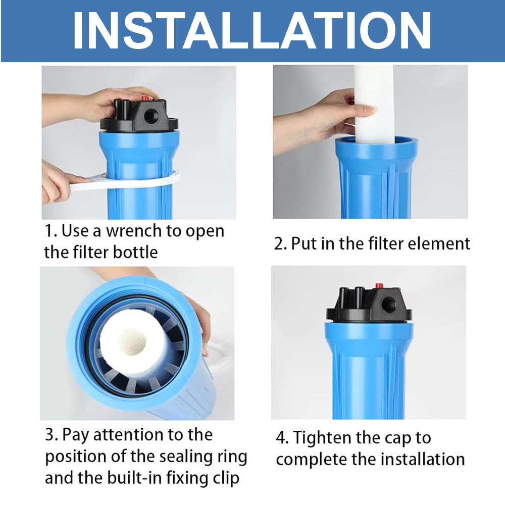 I-TECH 20" Whole House Reinforced Heavy Duty Single Water Filter Housing with PP Sediment Filter + Bracket + Opener