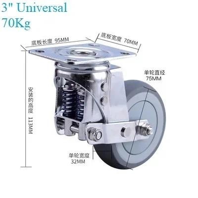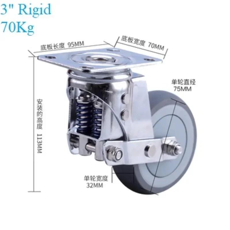 Heavy Duty 3" 4" 5" Dual Springs Caster Castor Rotating Swivel Spring-loaded Shock Absorber Flat Wheel Brake