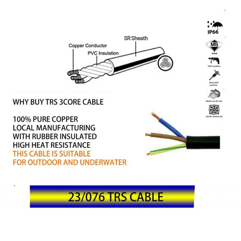 Heavy Duty 3 Gang 5 Meters TRS Cable Black Extension Trailing Soket