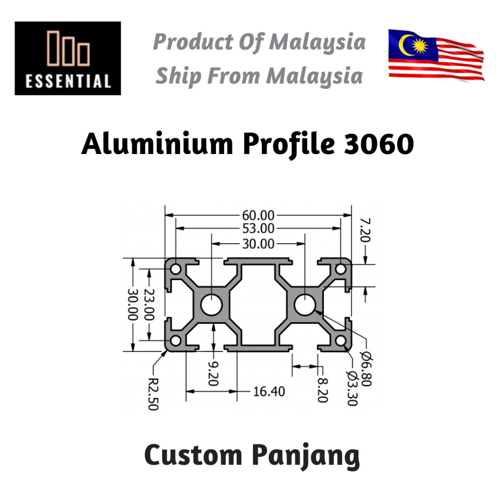 Heavy Duty 3060 Black Aluminium Profile size 30x60 20cm/40cm/60cm/80cm/100cm for commercial or DIY use