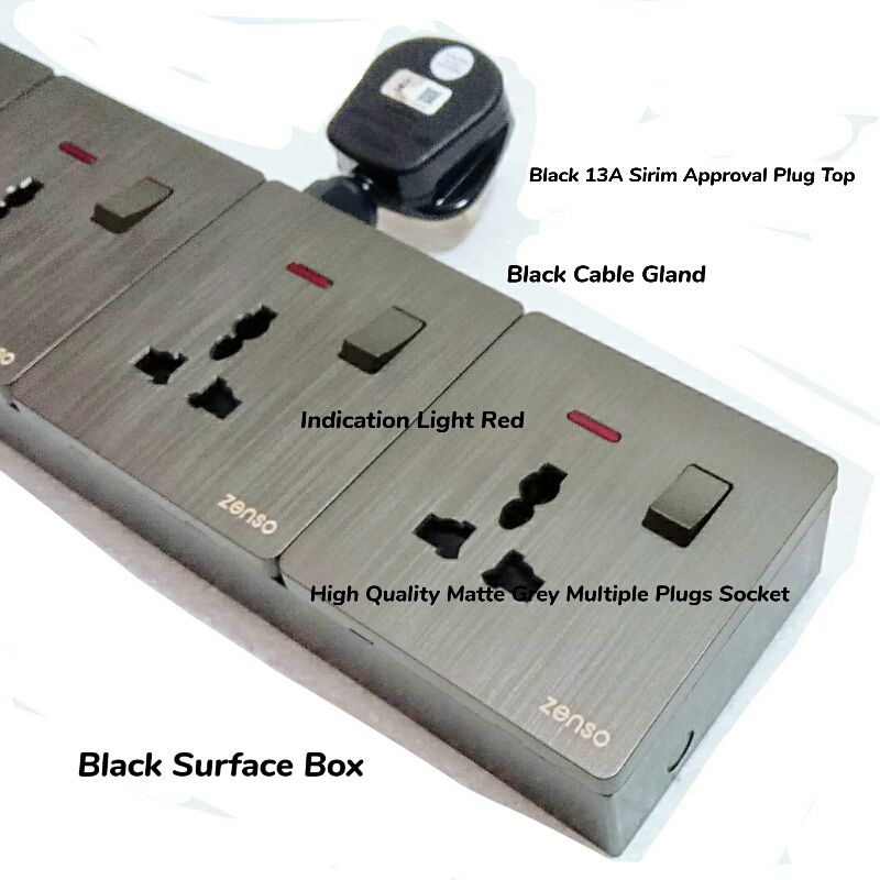 Heavy Duty 4 Gang Matte Grey Multiple Plugs T-Adaptor Wall Extension Wire Portable Socket