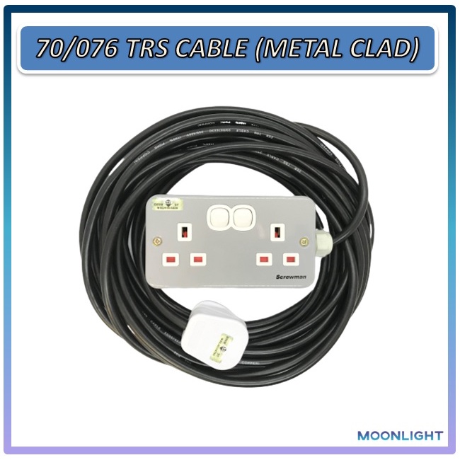 Heavy Duty Extension Double Socket Metal Clad 70/076 TRS Cable Rubber Wire