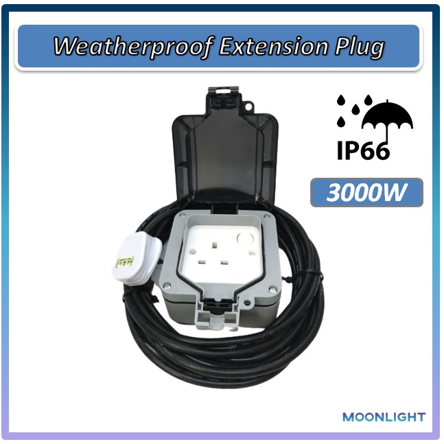 Heavy Duty IP66 Outdoor Extension Wire Trailing Socket 3000W Weatherproof Plug Garden Camping SIRIM