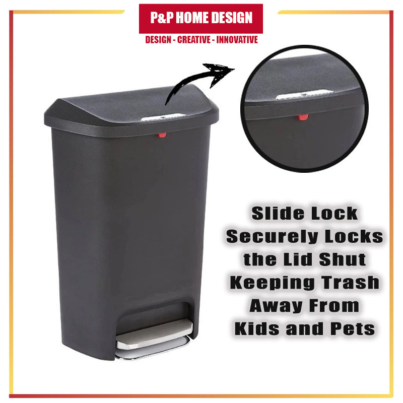 Heavy Duty Plastic Kitchen Bin with Soft Close | Tall Kitchen Plastic Rectangular Trash Can With Steel Pedal