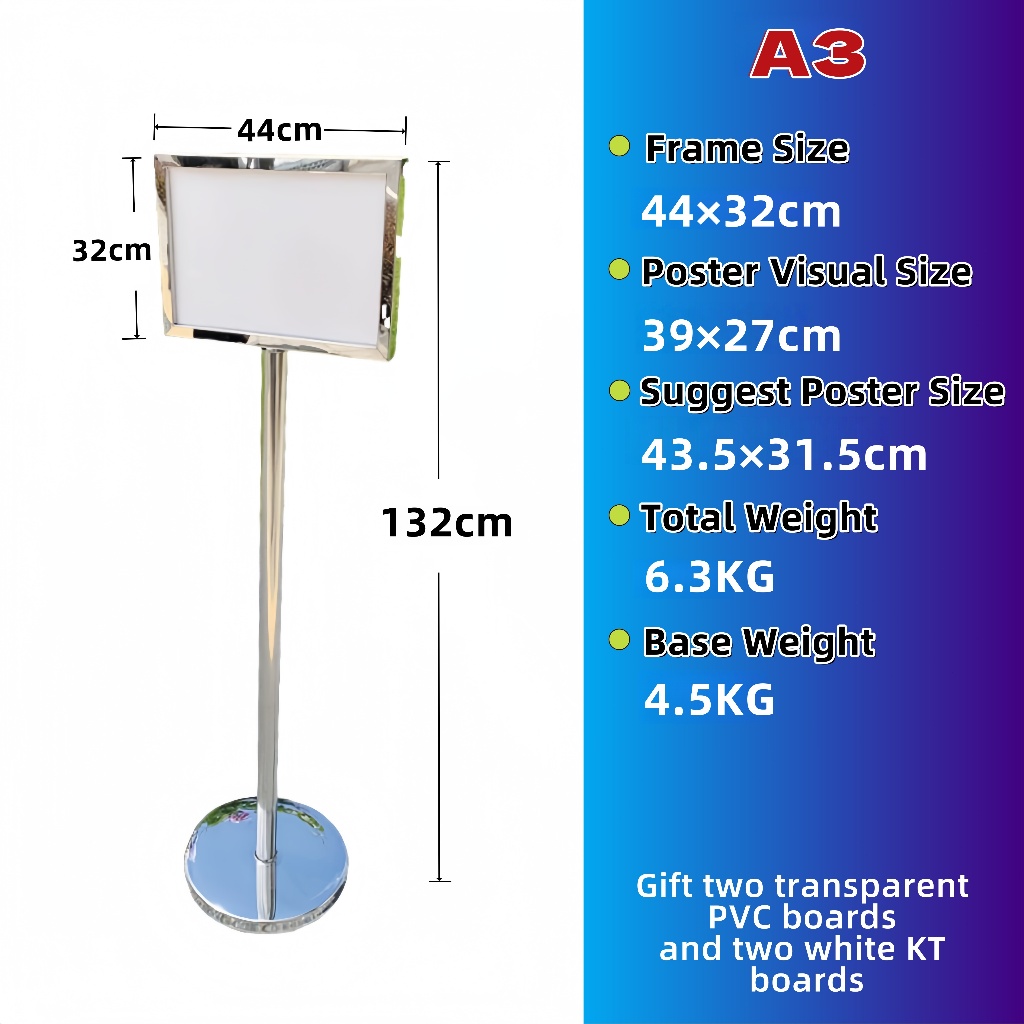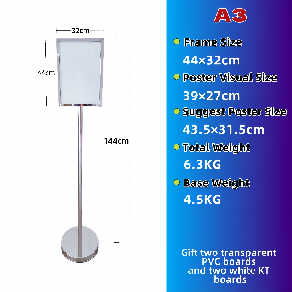 Heavy Duty Signboard Stand Stainless Steel A4 Outdoor Sign Stand Horizontal Guide Signage Stand Poster Display Stand