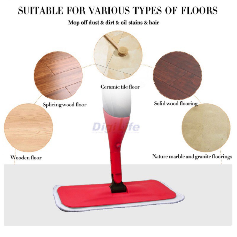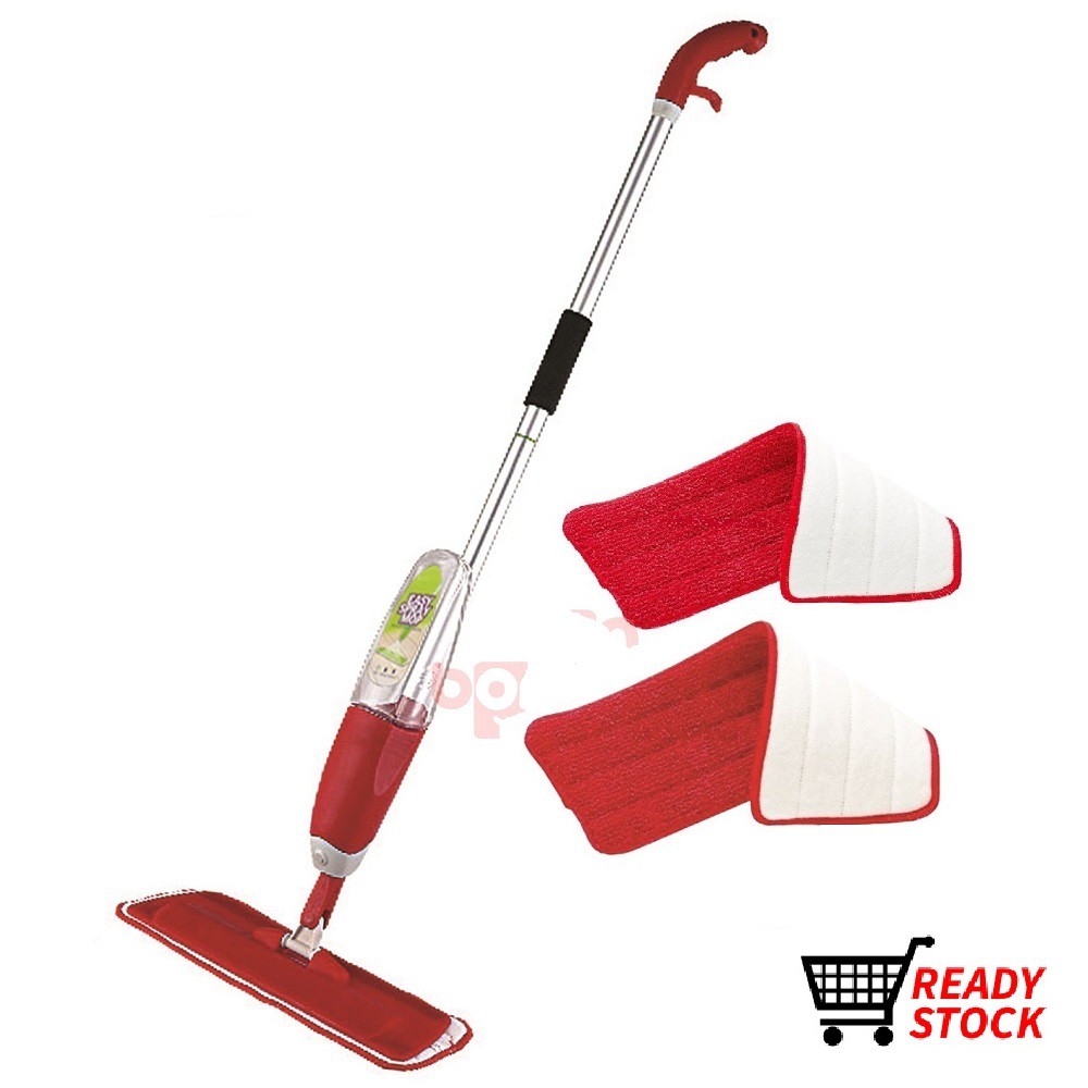 Heavy Duty Spray Mop Spray 2PCS Microfiber Cloth Floor Mop Lantai Flat Mop BIGGER Bottle & BIGGER Mop Cloth (WYL09 Red)