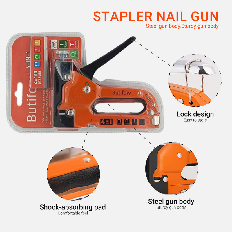 Heavy Duty Tacker 4 In 1 Multitool Nail Staple Gun Stapler Stapling Machine Kayu Baiki Sofa Motorsikal Upholstery Tacker