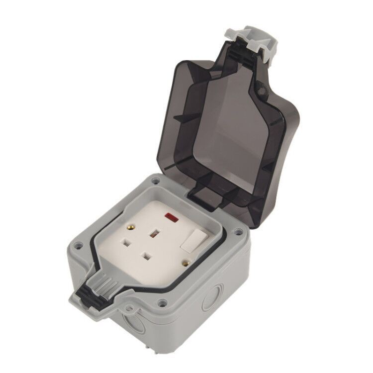 Heavy Duty Weatherproof Waterproof Outdoor IP66 13A Wall Single/Double Switch Socket (Neon)